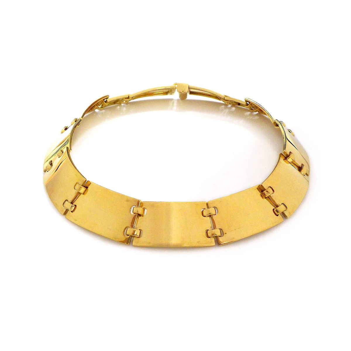 Description: An elegant necklace by Hermes performed in 18K yellow gold designed as a series of polished plates connected by polished links. Signed Hermes, marked 750, numbered, with maker's marks and French essay marks. Circa 1980s.