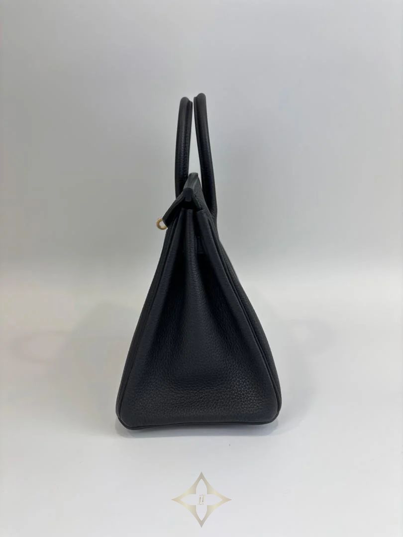 The Hermès Birkin 25 in black Togo leather with gold hardware epitomizes timeless luxury. Crafted with meticulous precision, its structured silhouette, fine grained leather, and gleaming hardware create an enduring symbol of elegance and exclusivity—an icon in every sense.