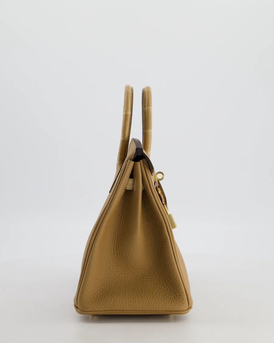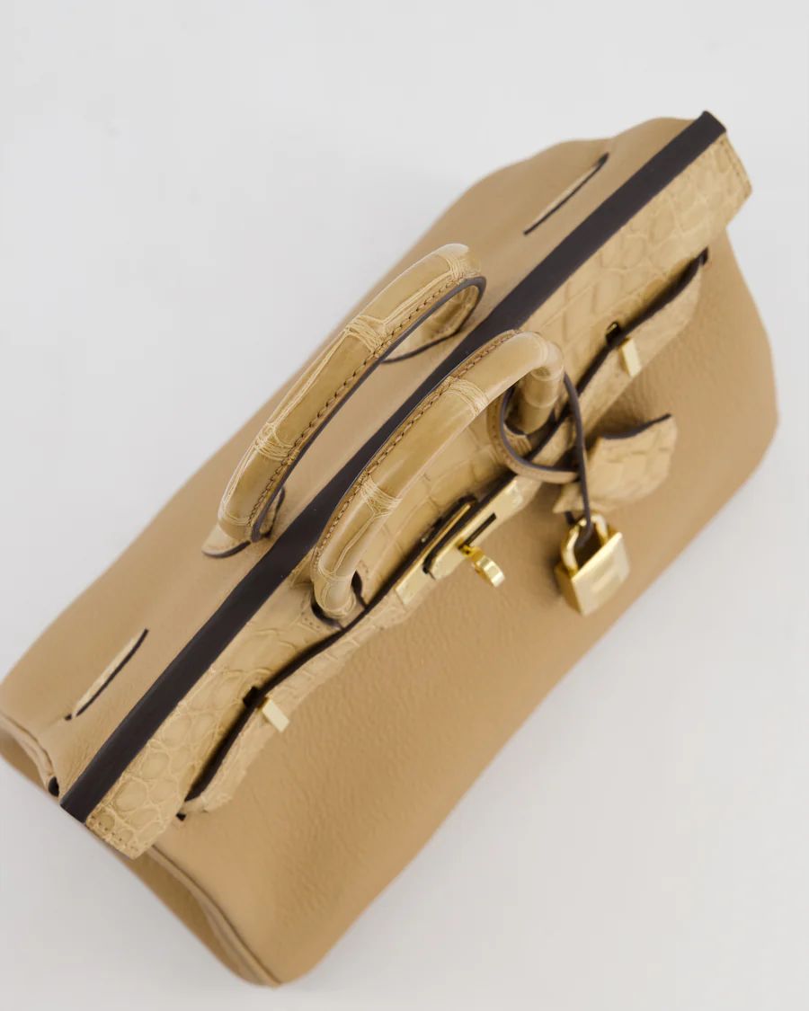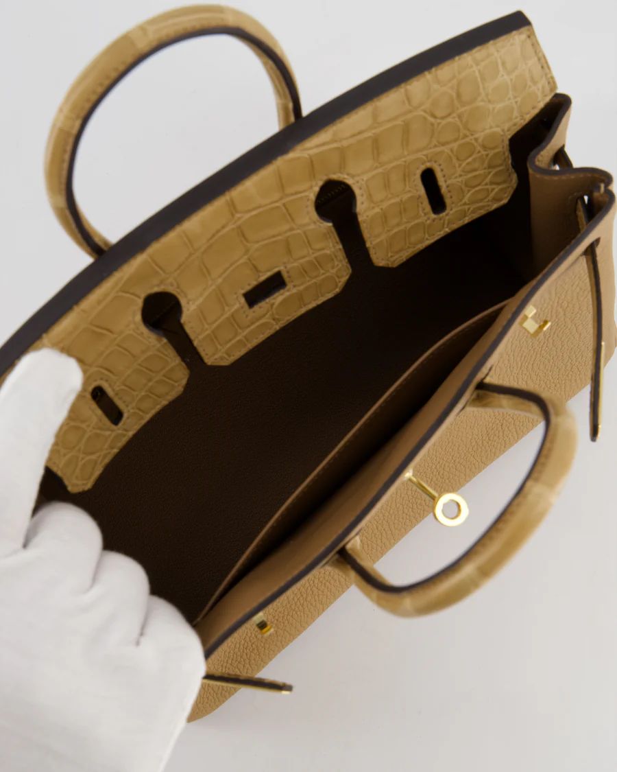 HERMÈS BIRKIN 25 RETOURNE TOUCH BAG IN CHAI TOGO AND CHAI ALLIGATOR MISSISSIPPIENSIS LEATHER | London 🇬🇧