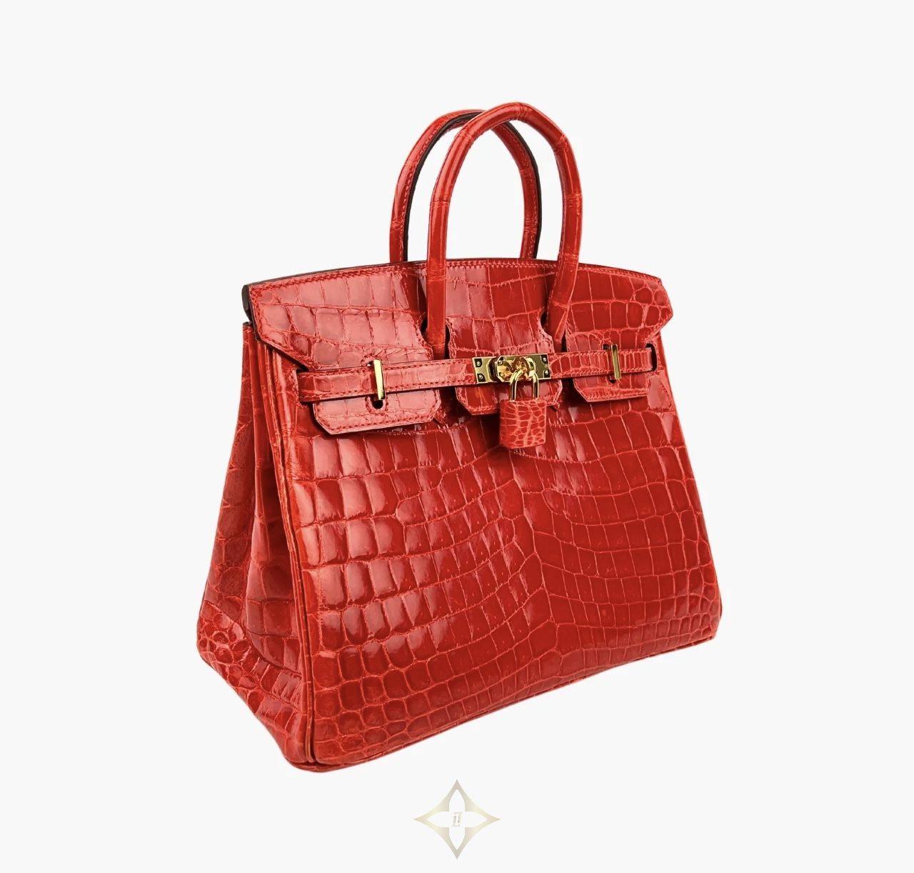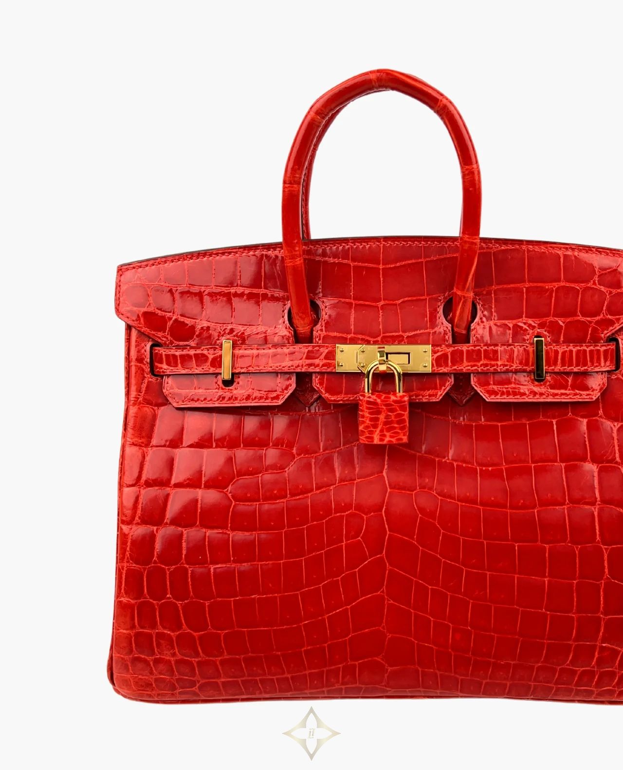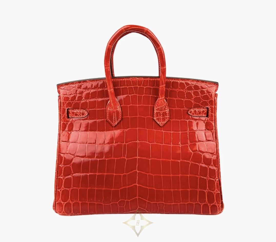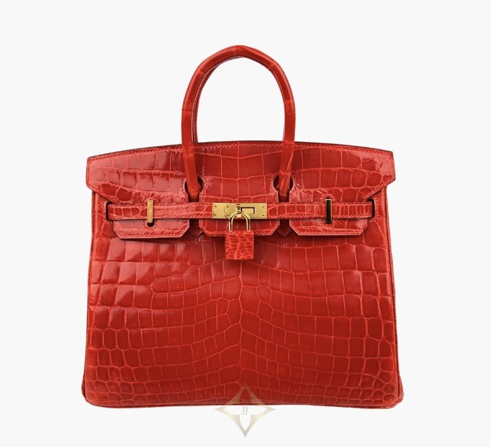 Hermès Birkin 25 Crocodile Niloticus in Geranium with Gold Hardware is a true statement of timeless luxury and exceptional craftsmanship. Crafted from exotic Niloticus crocodile leather—prized for its large, symmetrical scales and soft sheen—this piece radiates elegance in the vibrant and rare Geranium red tone. The gold hardware provides a warm contrast that highlights the bag’s sophisticated silhouette.