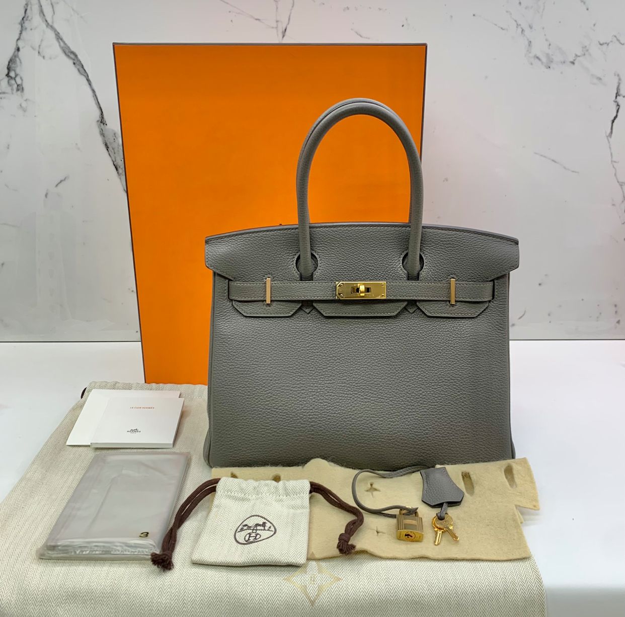 Hermès Birkin 30 PRICE: $17,000.00 MODEL Birkin DATE CODE Stamp Z (2021) COLOR Etain MATERIAL Togo MEASUREMENTS 30cm x 22cm x 16cm | 11.81" x 8.66" x 6.30" COMES WITH Photocopied Receipt, Box, Dust Bag, Clochette, Lock, Keys, Protective Felt, Care Card and Rain Cover CONDITION B+ In stock SKU: 257014782 ——— LUX.R Singapore 14 Scott's Road, #02-29 Far East Plaza, Singapore 228213 Email: jenny@lux-r.com.sg WhatsApp: +6580283911