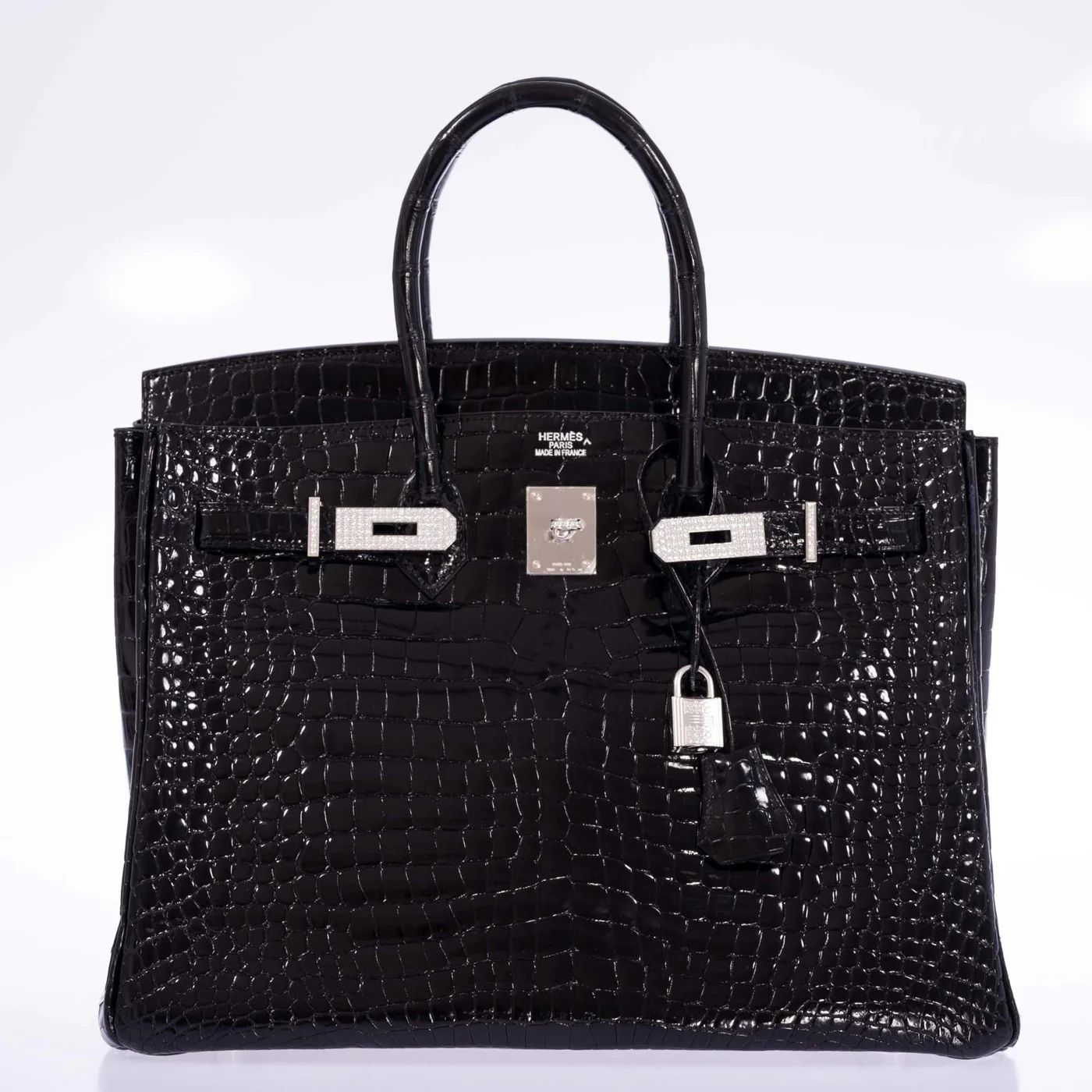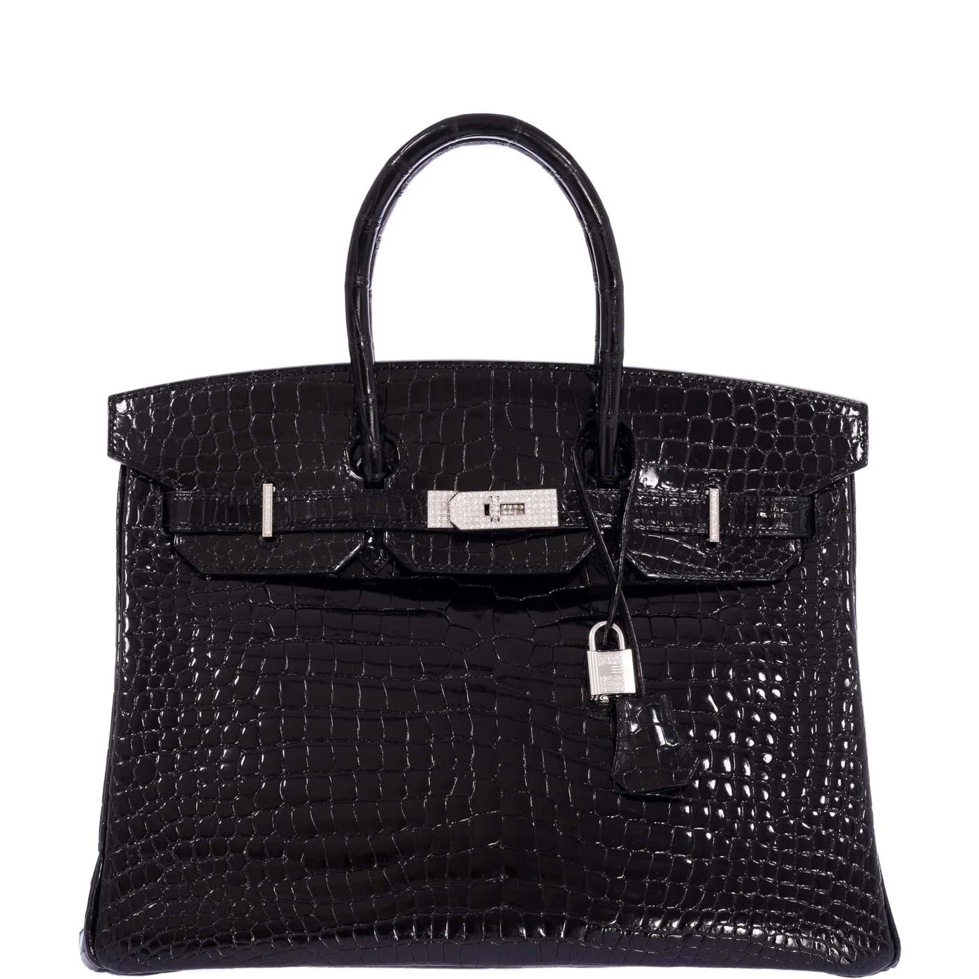 Hermès Birkin 35 Black Shiny Porosus Crocodile 18K White Gold and Diamond Hardware Sale price$155,000.00 USD DESCRIPTION Hermès Birkin 35 Black Shiny Porosus Crocodile 18K White Gold and Diamond Hardware The Hermès Birkin 35 in Black Shiny Porosus Crocodile with 18K White Gold and Diamond Hardware is the apex of luxury—an exceedingly rare creation that transcends handbag status to become wearable haute joaillerie. This masterpiece replaces traditional hardware with solid 18K white gold components encrusted with brilliant-cut diamonds, including the lock, keys, touret, and plaque. These elements are crafted by expert jewelers under Hermès’ highest production tiers, and only released to the brand’s most elite clientele. The black Shiny Porosus Crocodile leather—recognized by the caret (˄) symbol—is prized for its tight, symmetrical scales and liquid sheen. When paired with luminous diamond-studded hardware, it creates an aesthetic of absolute opulence and restrained power. Porosus Crocodile is the most luxurious exotic in Hermès’ repertoire, tanned and polished using a meticulous hand-buffing process called lustré, exclusive to the Parisian atelier. This is more than a bag; it is an ultra-rare Hermès grail, crafted not only for fashion but for legacy. As few as a handful of these are made per year, making them nearly impossible to acquire at retail. This is the ultimate acquisition for a top-tier collector or investor in fine luxury assets. DETAILS Condition: 1 – Pristine Stamp: Contact us Color: Black Material: Shiny Porosus Crocodile Hardware: 18K White Gold with Diamonds Dimensions: 35cm: 14" W x 7" D x 10" H JaneFinds Collector’s Insight: Diamond Birkins are the pinnacle of Hermès’ artisanal achievement. Few bags represent this level of rarity and craftsmanship, and fewer still reach the secondary market in pristine condition. This is the crown jewel of any Hermès collection. JaneFinds Resale Insight: These bags rarely resurface for resale—and when they do, prices can exceed 5x retail. Diamond hardware Birkin 35s are blue-chip assets that maintain demand across global auction houses, private collectors, and museum acquisitions. ——— JaneFinds (JaneFinds, Inc.) 120 Wooster, New York, NY 10012, US Phone: +1 305-330-6646 WhatsApp: +1 (201) 312‑4987‬ Email: sales@janefinds.com