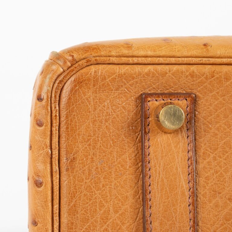 Hermès Birkin 35 Gold Ostrich GHW REF: LL09760.2 PRICE: €19,995.00 PRODUCT DESCRIPTION This Hermès Birkin 35 bag has been made from regal ostrich skin leather in the rich Gold color. The gold-plated hardware gives the bag the perfect finishing touch. This Birkin 35 is a true timeless masterpiece that will become the crown jewel of your bag collection. Stamp square H (2004) Comes with: Padlock and keys CONDITION Excellent vintage condition with light patina. Well-preserved with minor corner wear. One small mark on the back handle. SIZE & FIT 35 x 25 x 18 cm ——— LABELLOV Verlatstraat 15, 2000 Antwerpen, Belgium