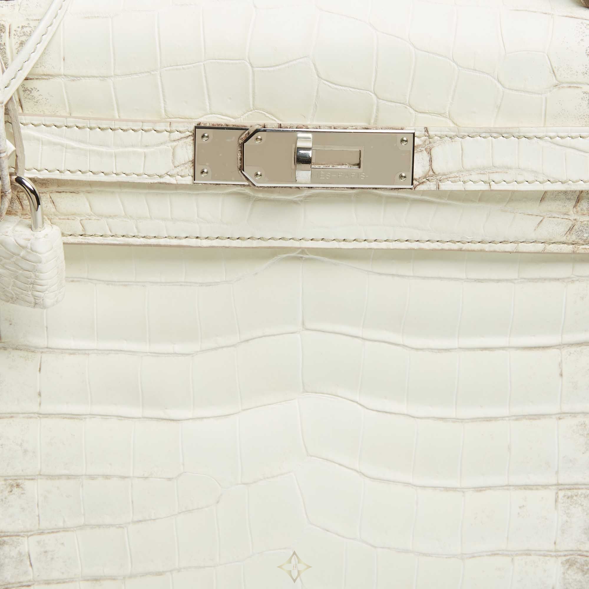 Hermès Blanc Crocodile Niloticus Himalaya Palladium Finish Kelly Retourne 32 Bag