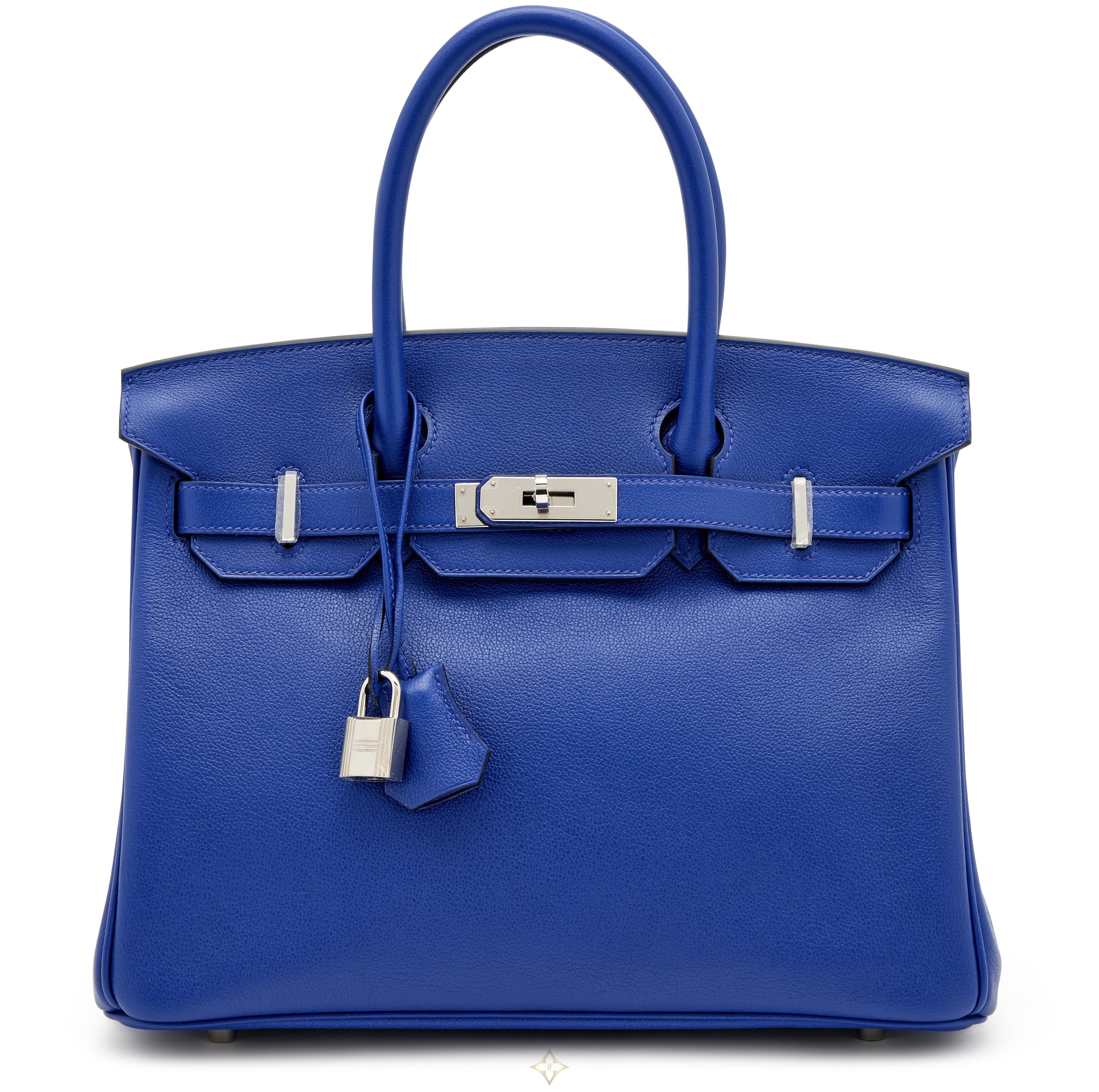 Hermès Bleu Electrique Evergrain Birkin 30 Bag Palladium Hardware, 2017
