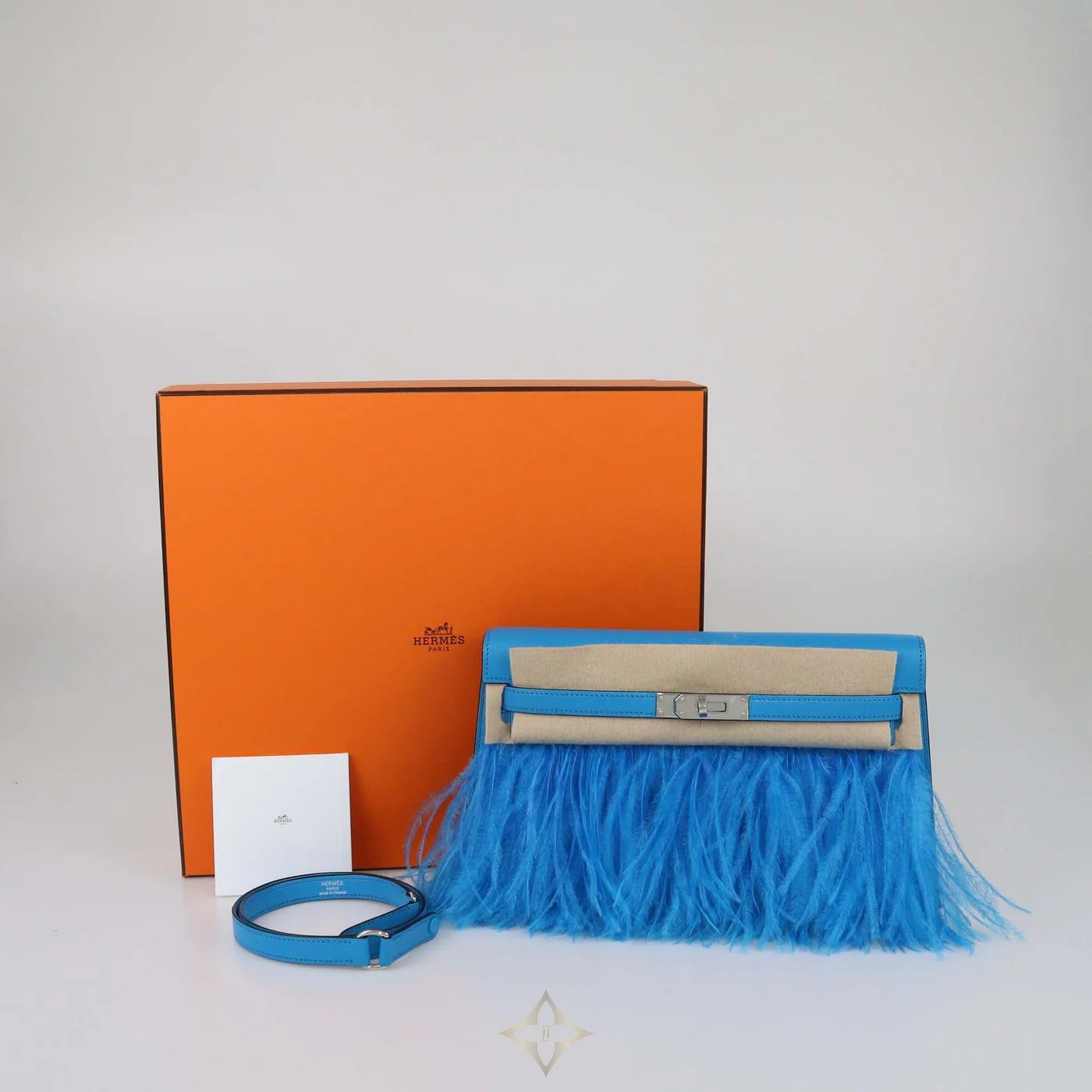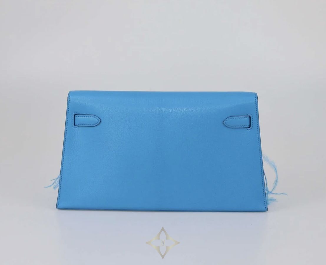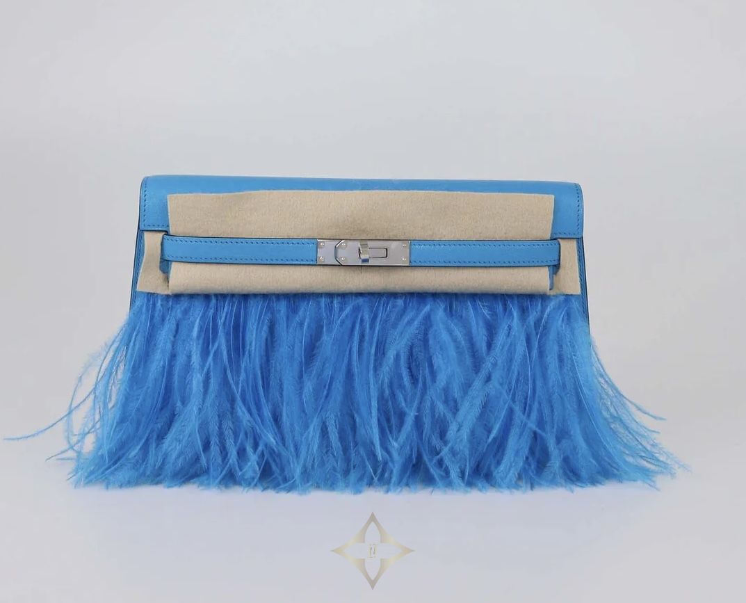 HERMES BLEU FRIDA CHEVRE CHAMKILA & OSTRICH FEATHER KELLY ELAN CLUCTH | Dubai 🇦🇪
