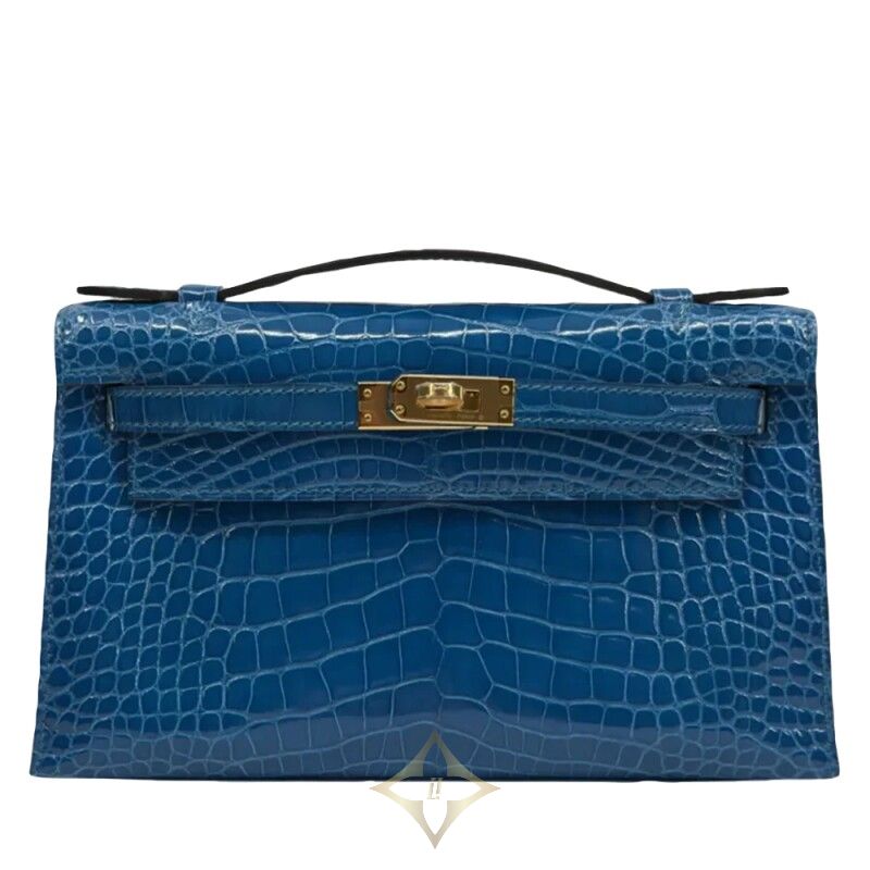 Bleu Izmir Alligator Kelly Pochette Gold Hardware, 2020