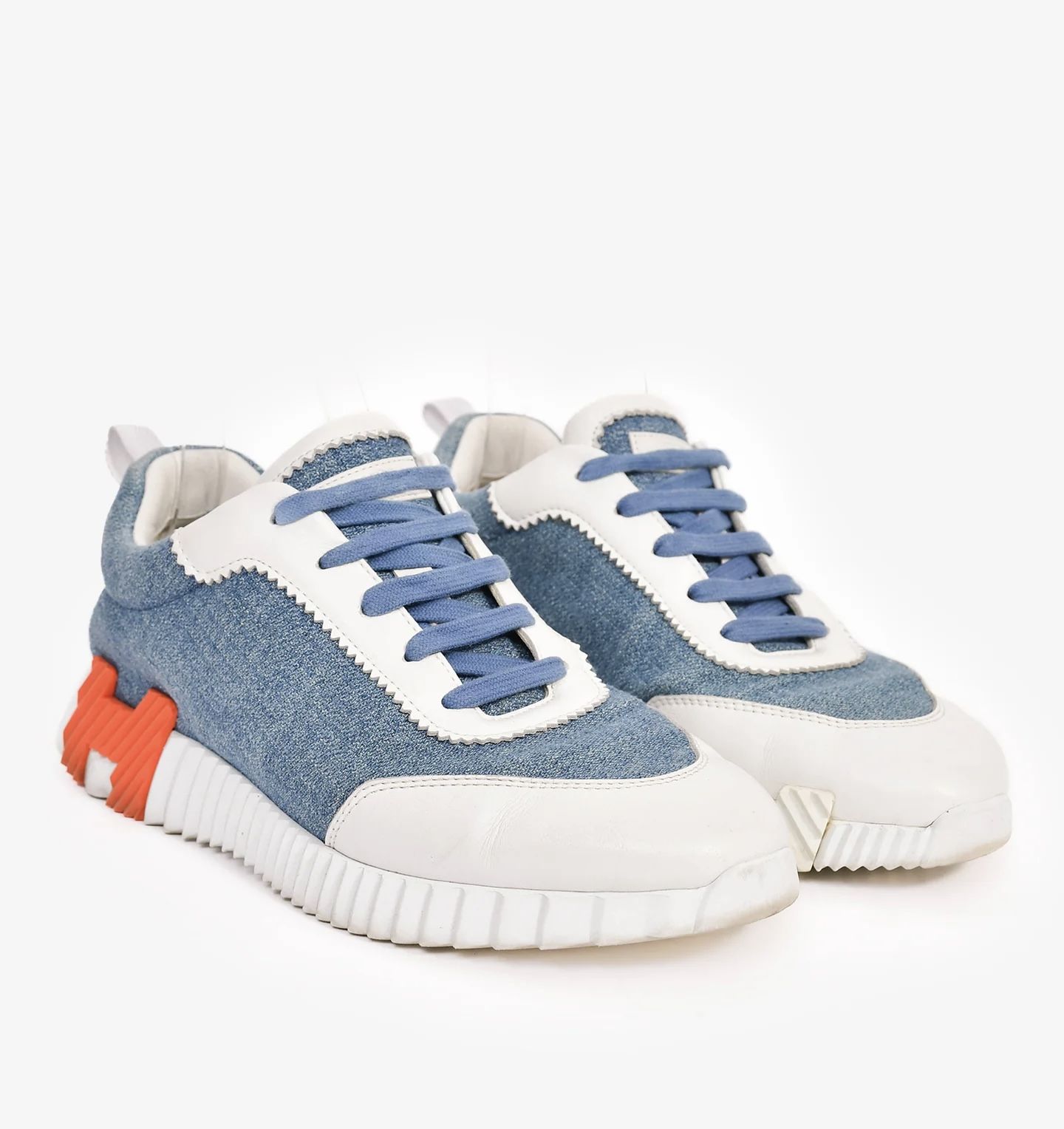 HERMÈS BLUE/WHITE DENIM/LEATHER H 'BOUNCING' SNEAKERS SIZE 40.5