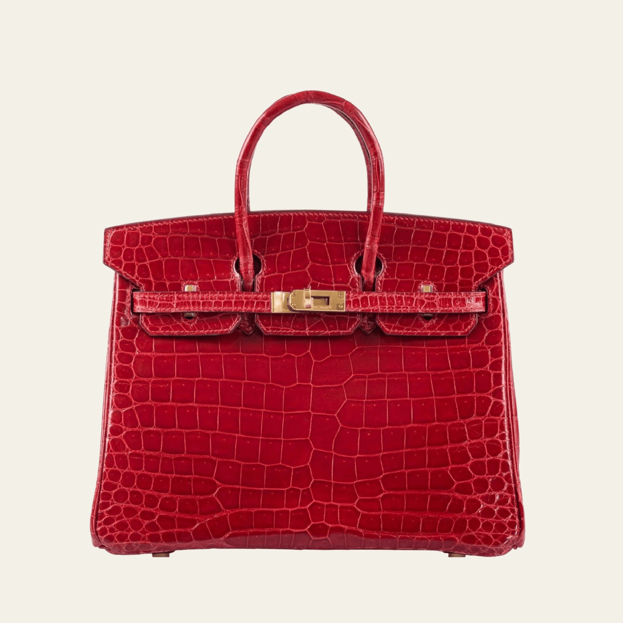 Hermès Braise Birkin 25 Shiny Porosus Crocodile Gold Hardware PRICE: $93,500 DESCRIPTION This Hermès Birkin 25 in Braise Shiny Porosus Crocodile is a powerful and exceptionally rare expression of Hermès’ most elite exotic craftsmanship. Braise—a deep, fiery red with subtle brown undertones—feels rich, dramatic, and unmistakably Hermès, offering a bold yet timeless alternative to classic reds. Rendered in Shiny Porosus crocodile, the maison’s most prestigious exotic skin, the bag showcases flawless, tightly aligned scales and a luminous, mirror-like finish that elevates the color to its fullest depth and intensity. Finished with gold hardware (GHW), this red Porosus Birkin 25 radiates warmth and opulence. The golden accents enhance the richness of the Braise tone while maintaining a refined, balanced elegance. Compact yet commanding, the Birkin 25 remains one of the most coveted sizes among collectors, especially when paired with Porosus crocodile—an allocation reserved for Hermès’ most distinguished clients. This Hermès Birkin is in brand new condition and comes with protective plastic on all hardware. It includes its full original packaging, including the Hermès clochette, lock and keys, dust bag, box, and original receipt. Condition: New Year: 2018 Material: Porosus Crocodile Measurements: (W)25cm ×(H)20cm ×(D)13cm Hardware: Palladium ——— Jewels Aficionado Beverly Hills Boutique (Inside the Waldorf Astoria Hotel in Beverly Hills) 440 NE 5th St, Miami, FL 33132, United States Phone: +13102946305 Email: sales@jewelsaficionado.com