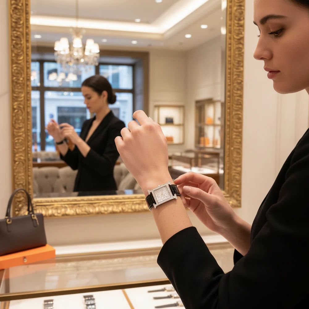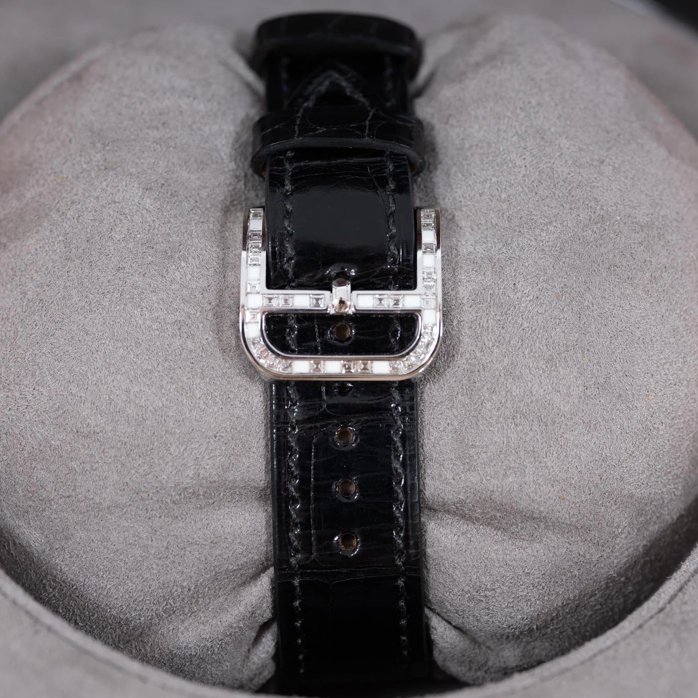 JaneFinds Collector’s Insight: The "Joaillerie" (High Jewelry) tier of Hermès watches is produced in extremely limited quantities. The use of Baguette-cut diamonds on the case is a significant value driver, distinguishing this piece from standard diamond-set models. It appeals to collectors who view watches not just as timekeepers, but as jewelry investments.