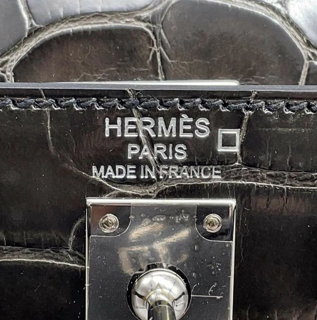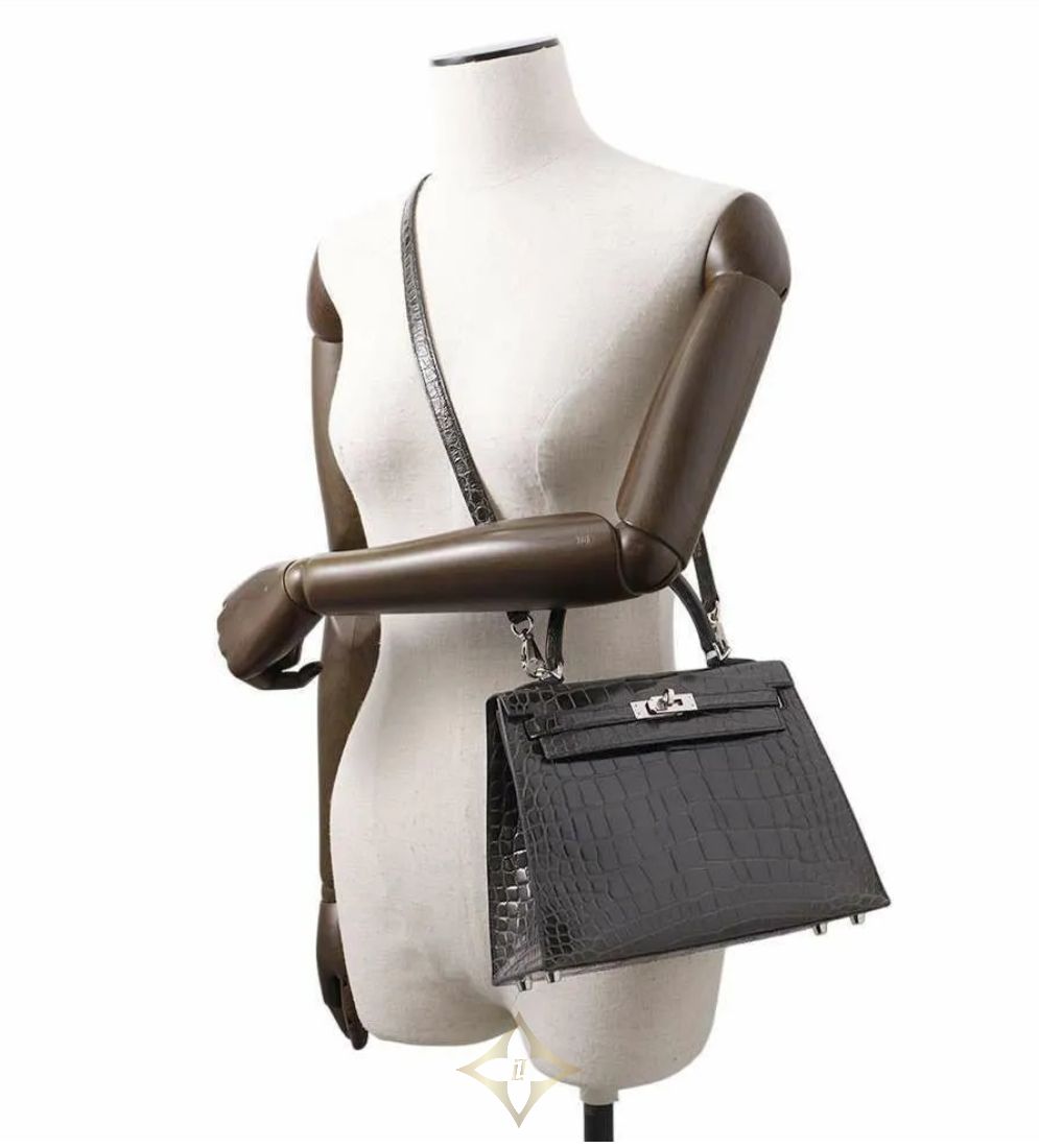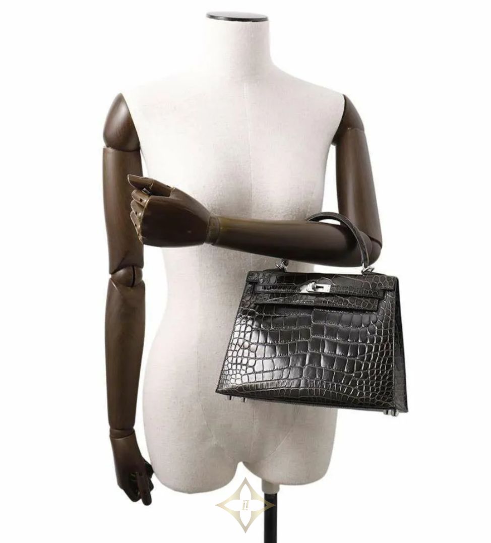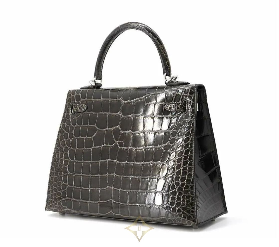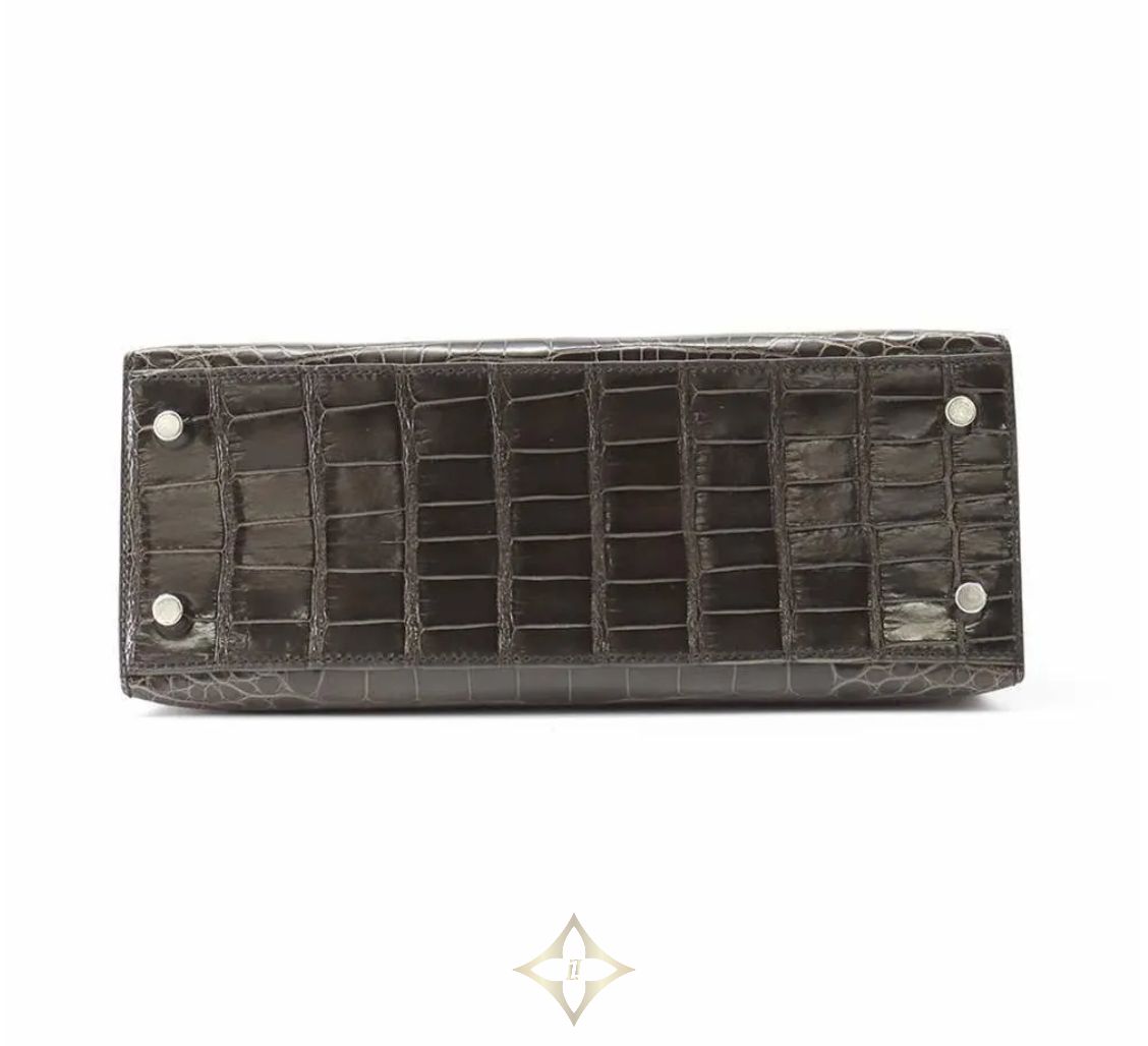 Hermes handbag Kelly 25, outside stitching, graphite/silver hardware, alligator