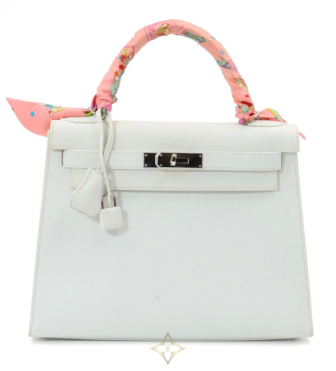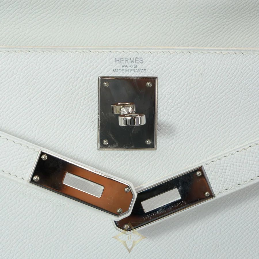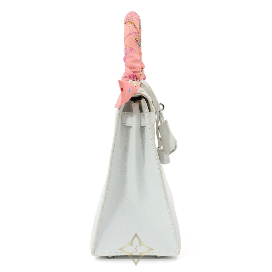 A masterpiece of refined elegance, the Hermès Kelly 28 Sellier is an iconic handbag that represents the pinnacle of luxury craftsmanship. This version is impeccably crafted from durable, lightweight Epsom leather in classic White—a pristine, versatile shade that pairs effortlessly with any wardrobe.
