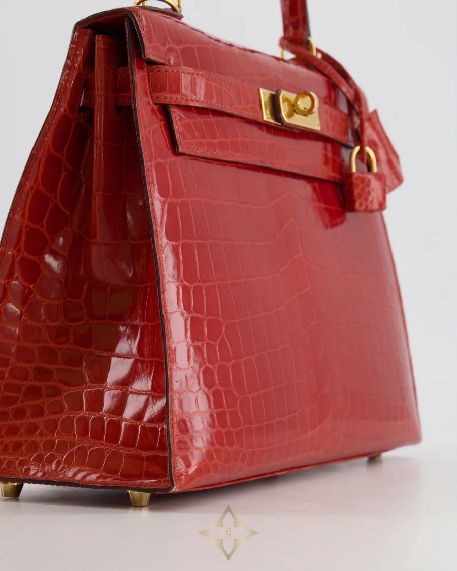 Hermès Kelly Bag 28cm in Sanguine Crocodile Niloticus Leather with Gold Hardware