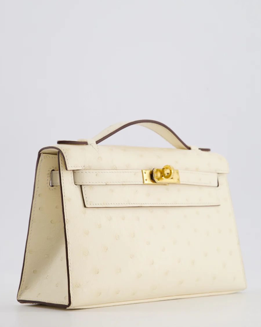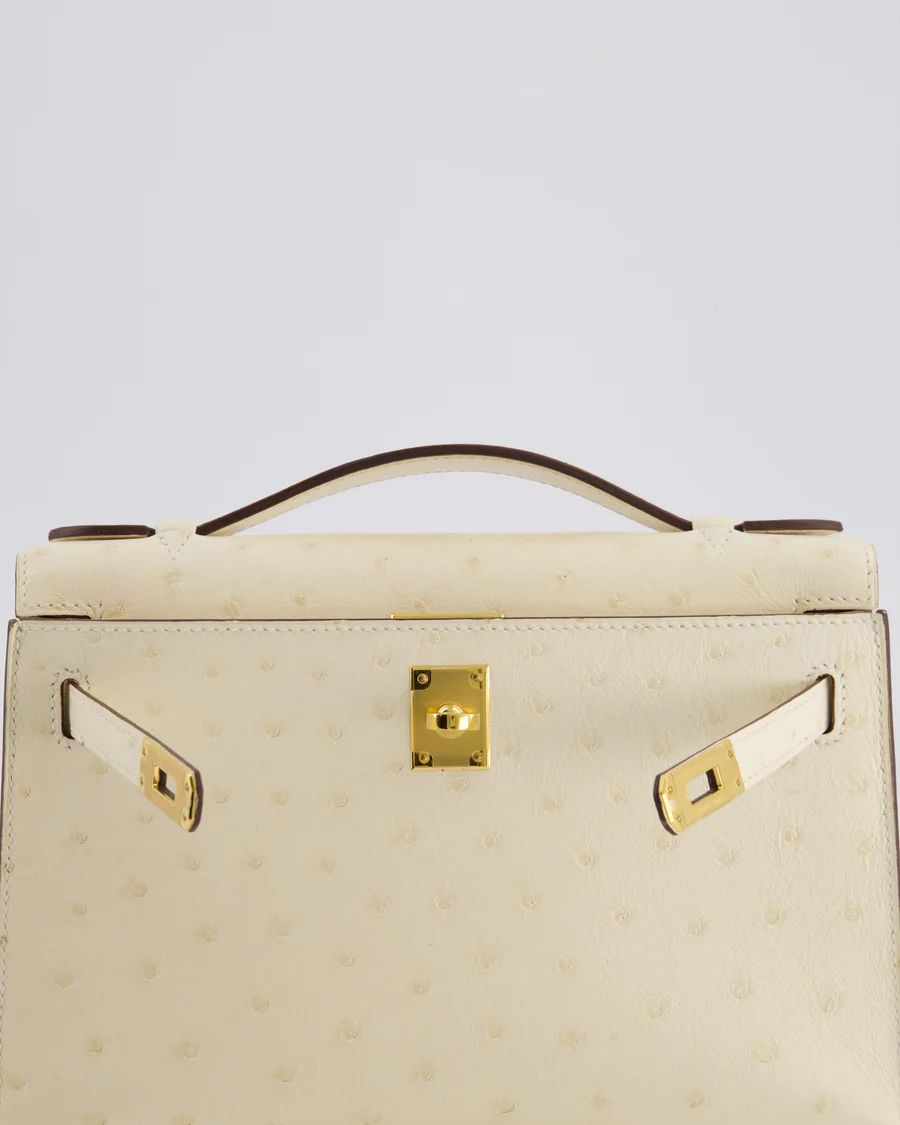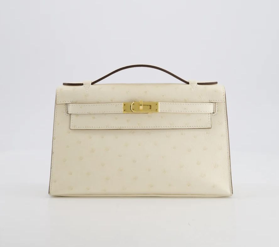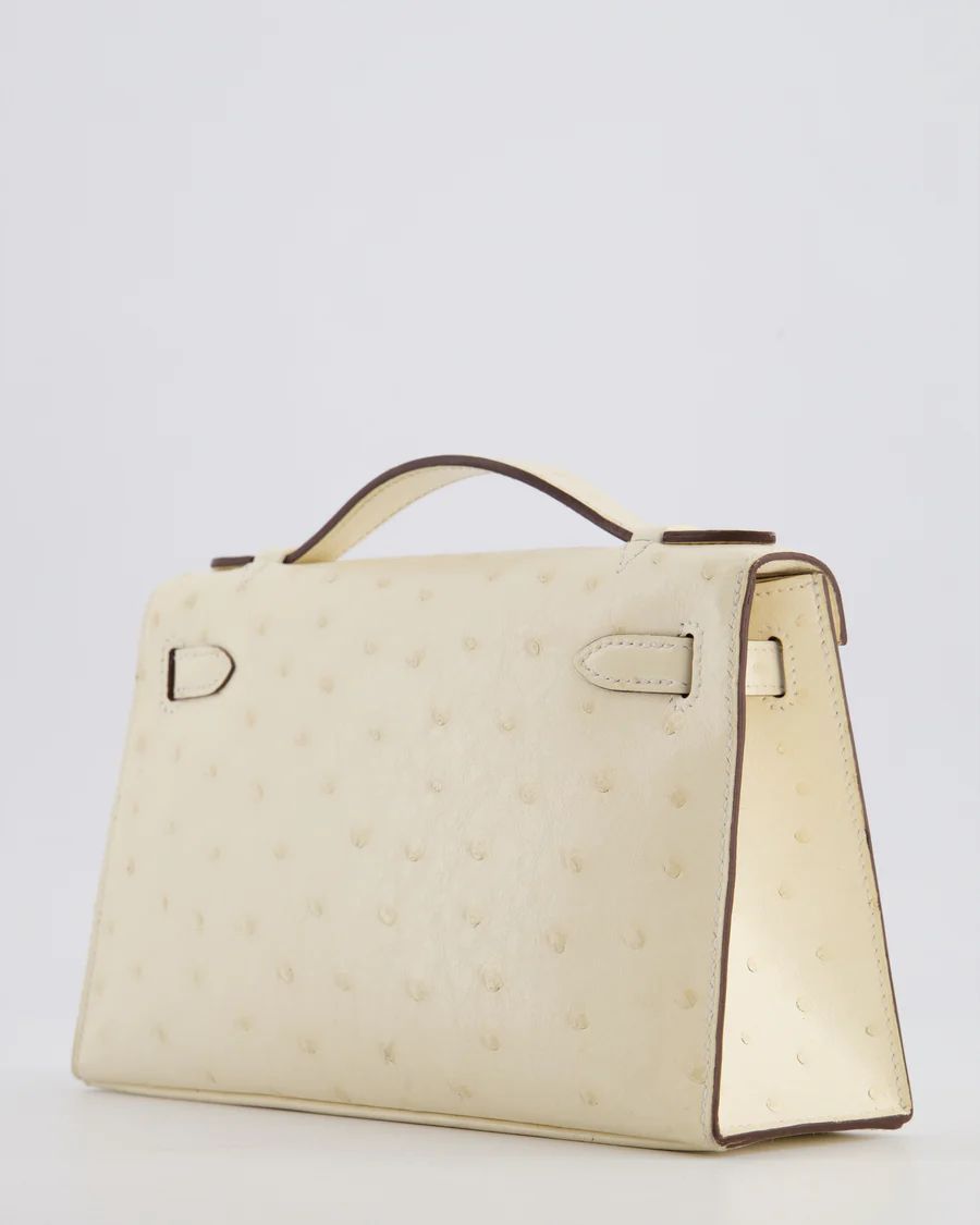 Hermès Kelly Pochette Bag in Nata Ostrich Leather with Gold Hardware