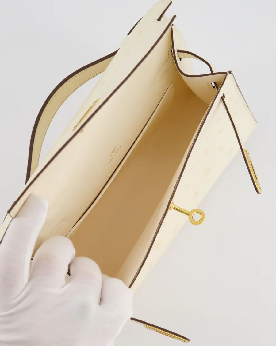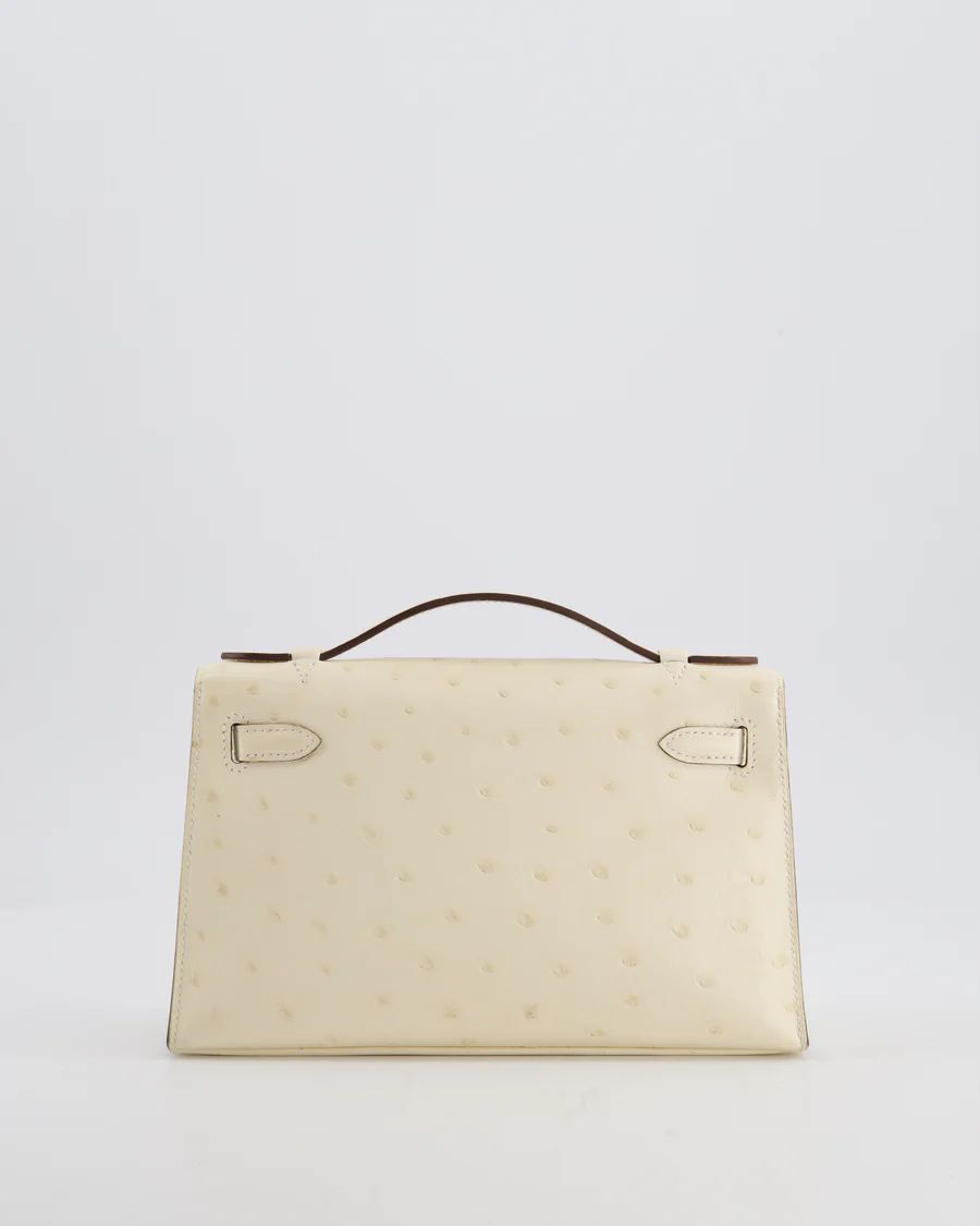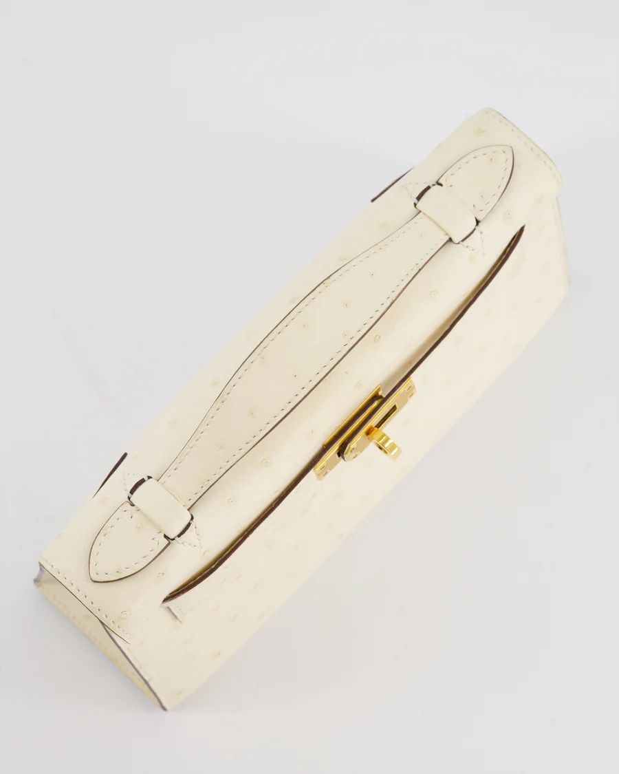 Hermès Kelly Pochette Bag in Nata Ostrich Leather with Gold Hardware