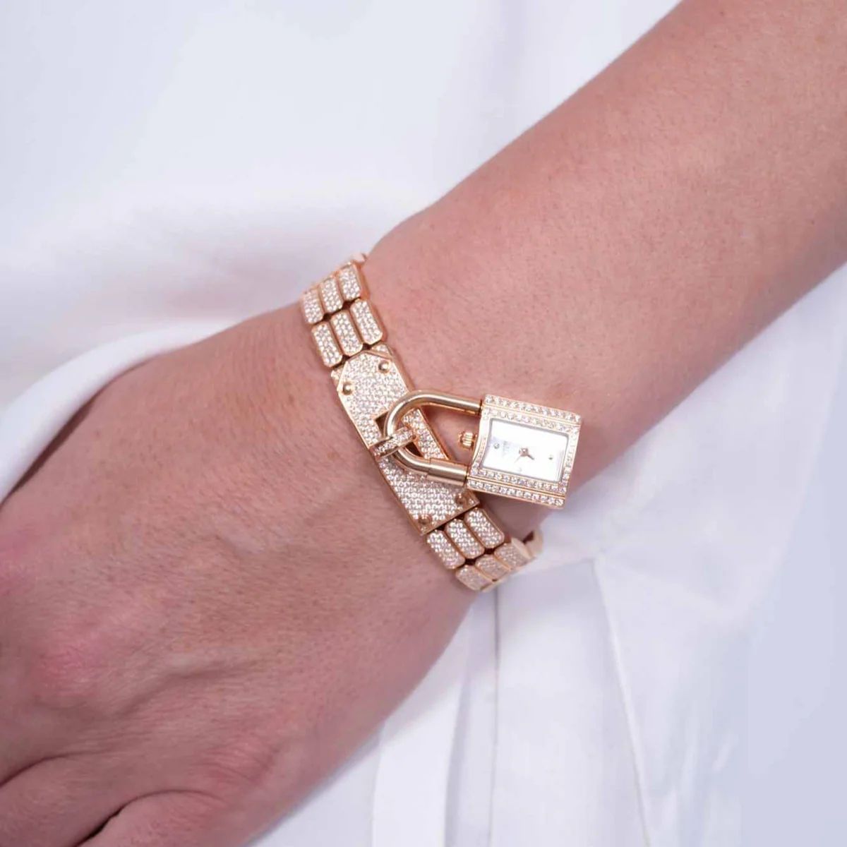 Hermès Kelly Watch High Jewelry Full Diamond Pavé Rose Gold 3 Piece Set