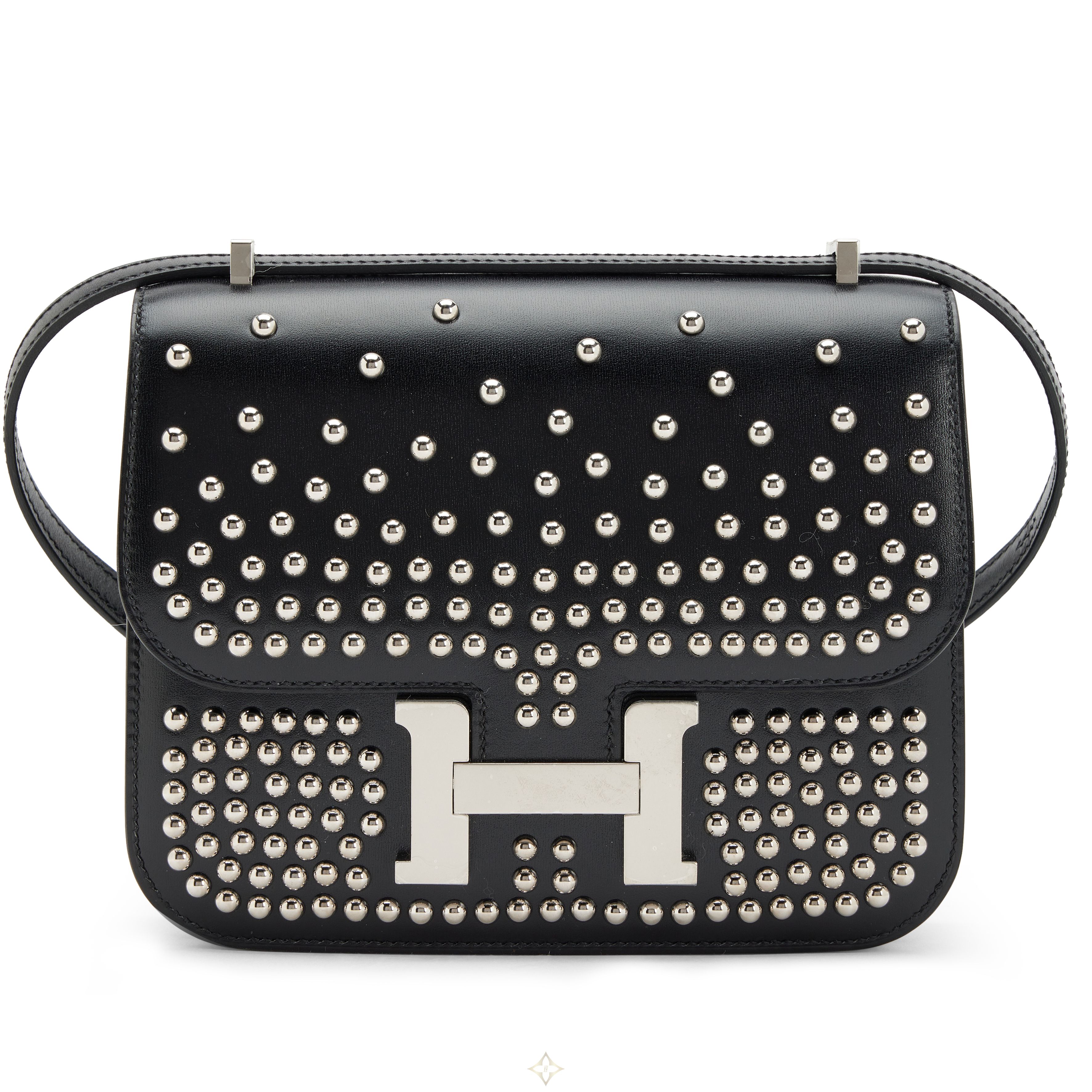 Limited Edition Black Box Calf Studded Mini Constance 18 III Sac Miroir Clouté Palladium Hardware, 2024