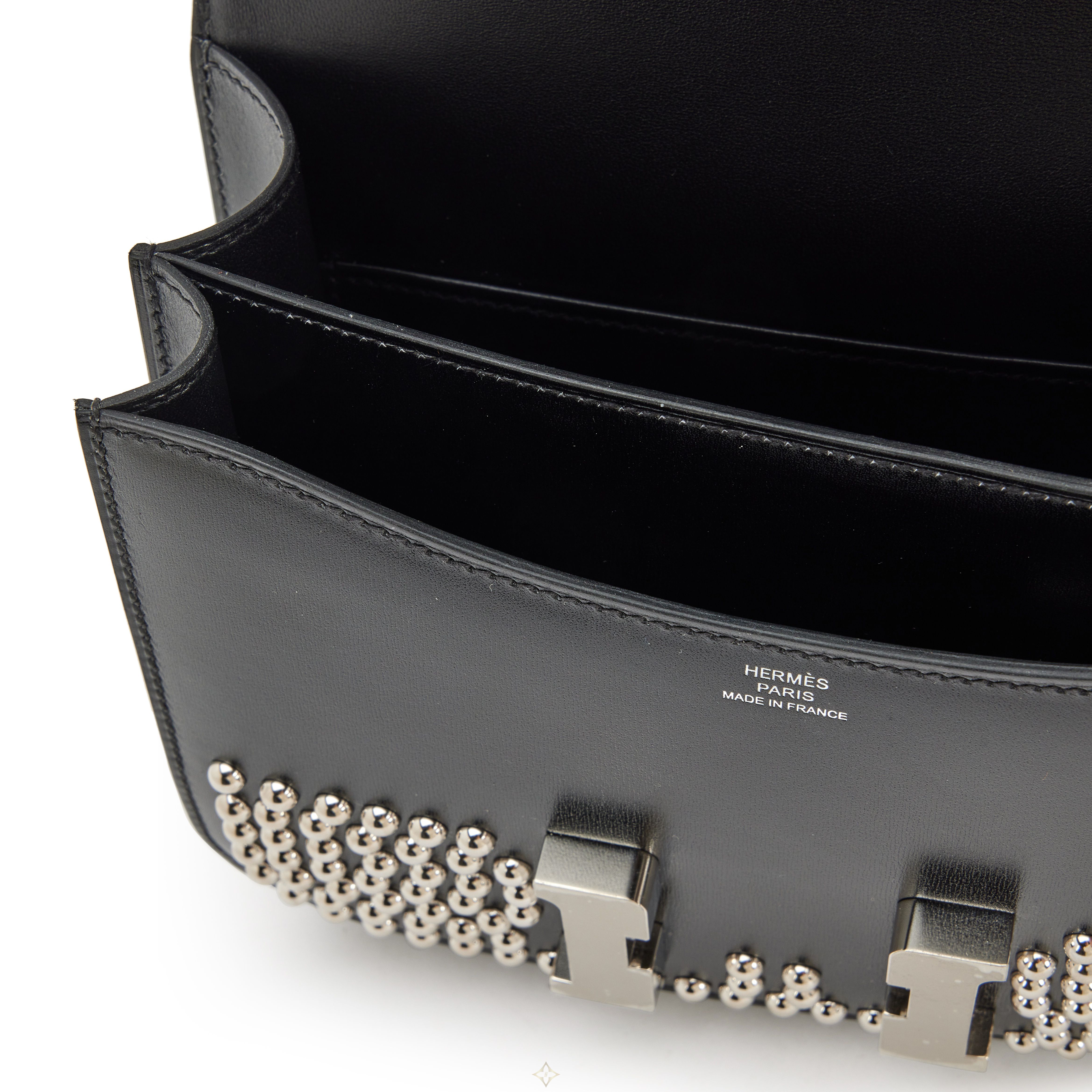 Hermès Limited Edition Black Box Calf Studded Mini Constance 18 III Sac Miroir Clouté Palladium Hardware, 2024