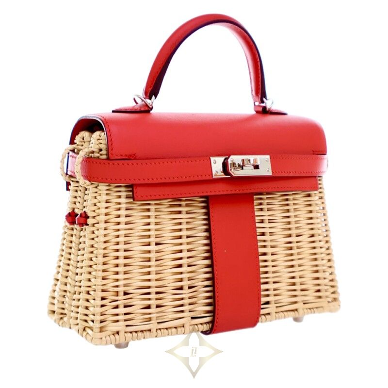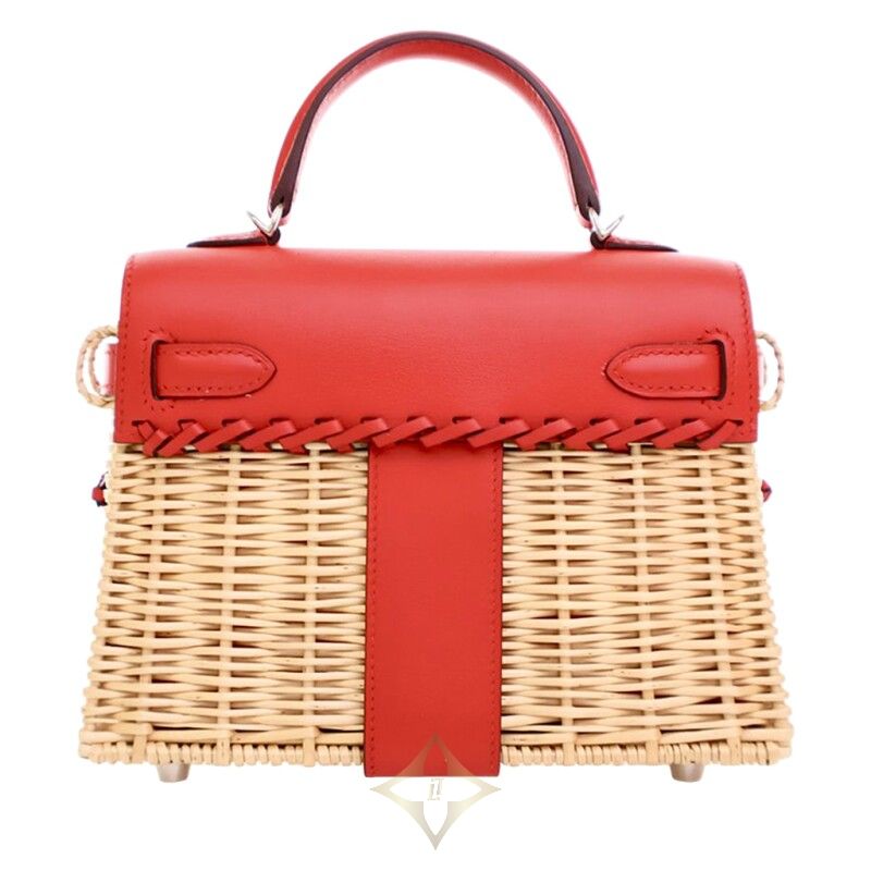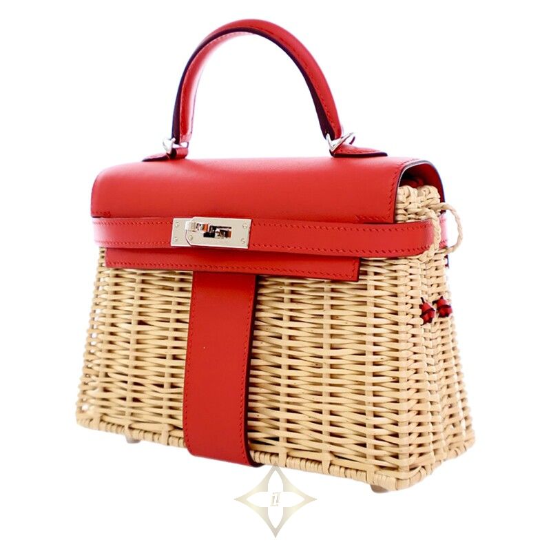 Hermès Limited Edition Rouge De Coeur Swift and Osier Wicker Picnic Kelly 20 Palladium Hardware, 2019