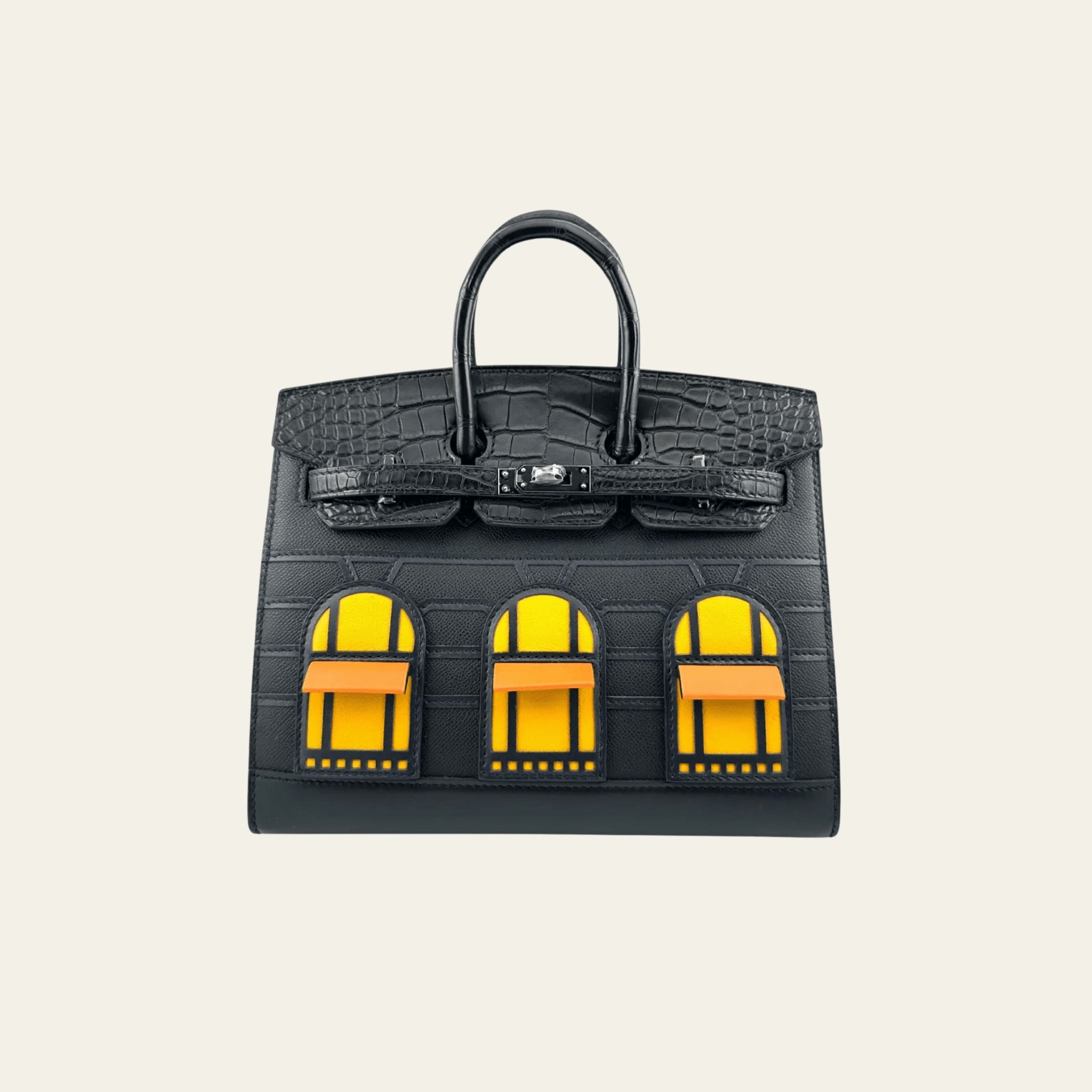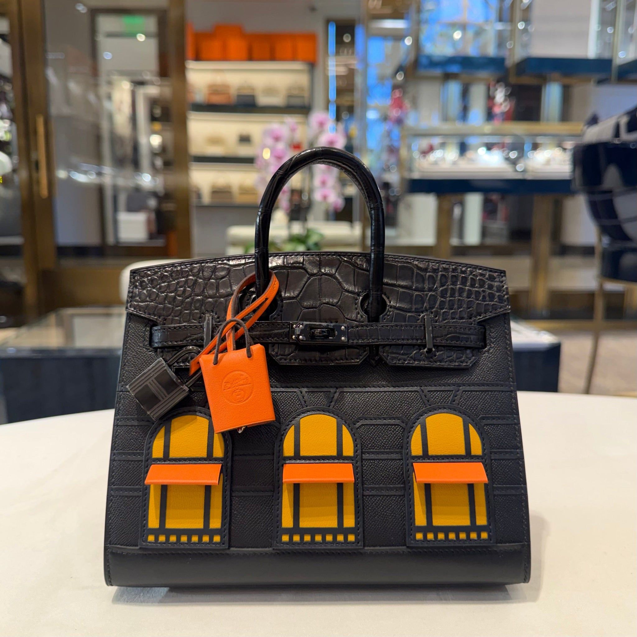 Hermès "Midnight" Faubourg Birkin Sellier 20 Noir Matte Alligator So Black Hardware Limited Edition PRICE: $320,000 DESCRIPTION This Hermès “Midnight” Sac Faubourg Birkin Sellier 20 is an ultra-rare Limited Edition creation, produced exclusively for Hermès’ most elite VIP clientele. Interpreted in a dramatic So Black palette, this version presents the Faubourg concept in its most refined and architectural form. The façade is rendered entirely in Noir matte alligator, showcasing flawless scale symmetry and a velvety finish that emphasizes texture and depth rather than contrast. The monochromatic execution highlights the precision required to construct the Faubourg design in exotic leather, elevating the Birkin into a sculptural, museum-grade piece. Finished with So Black hardware, this Midnight Faubourg Birkin 20 Sellier achieves a seamless, fully blacked-out aesthetic that is rarely seen within Hermès’ most collectible offerings. The Sellier construction sharpens every line of the storefront detailing—windows, doors, and rooftop elements—allowing form and craftsmanship to take center stage. Produced in extremely limited quantities and never offered through standard retail channels, the So Black Faubourg is regarded as one of the most exclusive modern Faubourg editions ever released. This Hermès Birkin is in brand new condition and comes with protective plastic on all hardware. It includes its full original packaging, including the Hermès clochette, lock and keys, dust bag, box, original receipt and CITIES. This bag comes in an Hermès blue box, reserved only for the most limited releases. Condition: New Year: 2022 Leather: Matte Alligator Trim & Façade Details: Madame calfskin, Swift leather, and Epsom leather Interior: Chèvre Mysore Hardware: Palladium hardware (PHW) Measurements - (W)20cm ×(H)15cm ×(D)10cm Hardware: So Black Hardware *Comes with full original packaging *Full stickers on the hardware