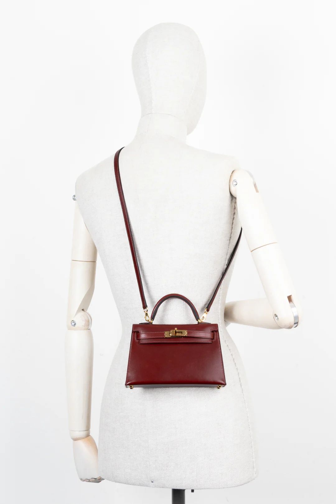 HERMES Mini Kelly Sellier Box Rouge H Regular price: CHF 29,895.00 Tax included. CONDITION: GOOD DESCRIPTION The HERMÈS Mini Kelly in Rouge H isn't just a bag—it's a statement. A symbol of timeless class, French elegance, and that special something that only HERMÈS can create. Inspired by the legendary Grace Kelly, this design was created in the 1930s – but in its mini version it looks fresher than ever: sophisticated, charming and incredibly desirable. Crafted from finely embossed box leather, the Mini Kelly impresses with its clean, defined silhouette. The sharp edges, precisely crafted seams, and structured shape give it an unmistakably elegant look—like a couture dress for your wrist. The Rouge H color makes it a beautiful style partner—from day to night, casual to formal, understated yet full of aura. And despite its petite size, it's surprisingly functional: cell phone, cardholder, lipstick—everything fits without compromising on style. With the iconic Kelly lock, a top handle, and a detachable shoulder strap, it's as versatile as its wearer. A true jewel of the HERMÈS world – discreet, rare, and made for those who don't have to look for something special – they wear it. Year: 2024 Datecode / Serial Number: W Color: H red Material: Hardware: Gold Dimensions: W 20 cm x H 12 cm x D 6 cm Shoulder strap: 97 cm Interior: 1 inside compartment, 1 small side compartment. Accessories: Box, Dustbag Details: Fine scratches are visible on the back of the Treasure ——— REAWAKE Brandschenkestrasse 43, 8002 Zürich, Switzerland Phone: +41 44 300 30 07 Email: info@reawake.ch