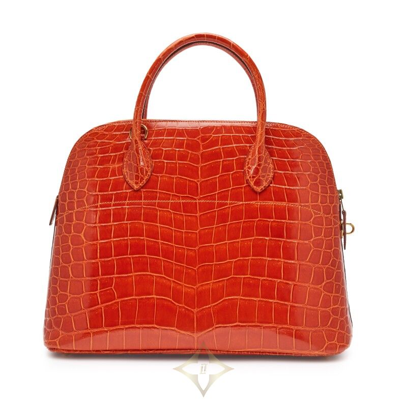Hermès Orange Shiny Porosus Crocodile Bolide 35 Gold Hardware, 1997 | Milano 🇮🇹