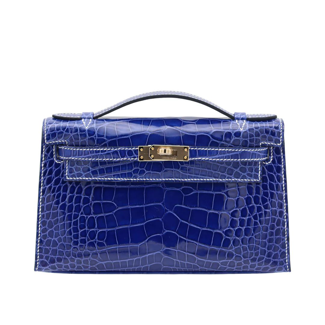 HERMES POCHETTE KELLY SPO BLUE ELECTRIC NATA ALLIGATOR SHINE GOLD HARDWARE K STAMP