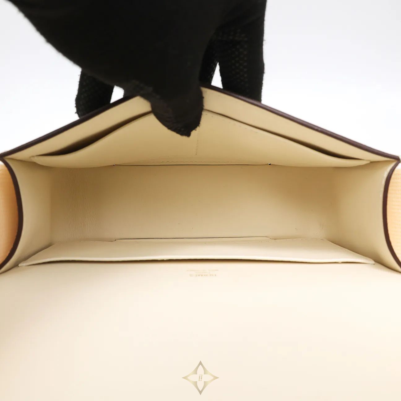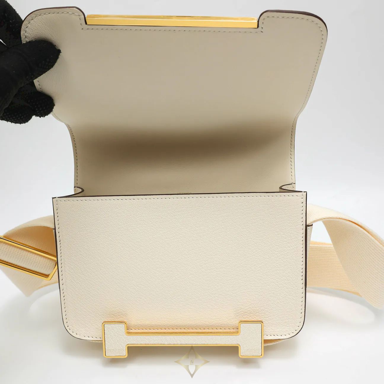 HERMES PRE-OWNED GETA BAG E19872 Bag in Mysore goatskin with adjustable canvas shoulder strap, one main compartment, two interior pockets and palladium plated "H" closure with tone-on-tone leather marquetry The hardware serves several purposes: magnetic closure, bottom rivet and adjustment system. PRICE: HK$32,999.00 Description Product name: HERMES PRE-OWNED GETA BAG Year: 2022 Model: H83052CC Serial number: U Rating: Good Color: Nata Material: Mysore sheepskin Dimensions: 23 x 13 x 6 cm Accessories: box, dust bag, receipt Country of Origin: France Elittleworld Store Address