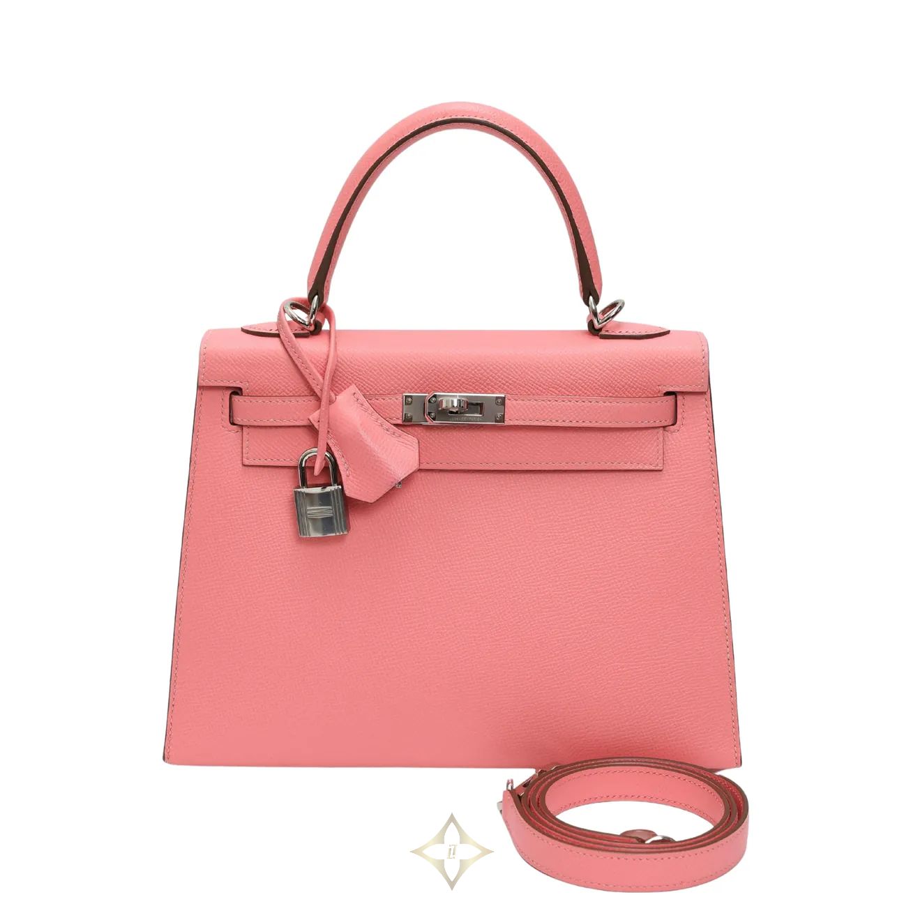 HERMES PRE-OWNED KELLY 25 SELLIER BAG E21514 This Kelly 25 tote boasts two straps which encase the boxy style and fasten with a gold-tone padlock. PRICE: HK$124,999.00 Description Product name: HERMES PRE-OWNED KELLY 25 SELLIER BAG Year: 2020 Serial number: Y Rating : Good Color : Pink/Silver Metallic Material: Epsom Leather Dimensions: 25 x 10 x 18 cm Accessories: box, dust bag, shoulder strap, lock, key Country of origin: France Elittleworld Store Address