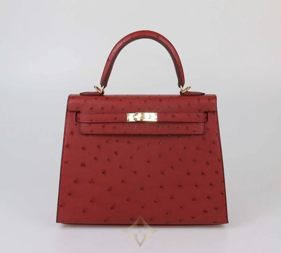 HERMES ROUGE GRENAT OSTRICH GOLD HARDWARE KELLY SELLIER 25 BAG | Dubai 🇦🇪