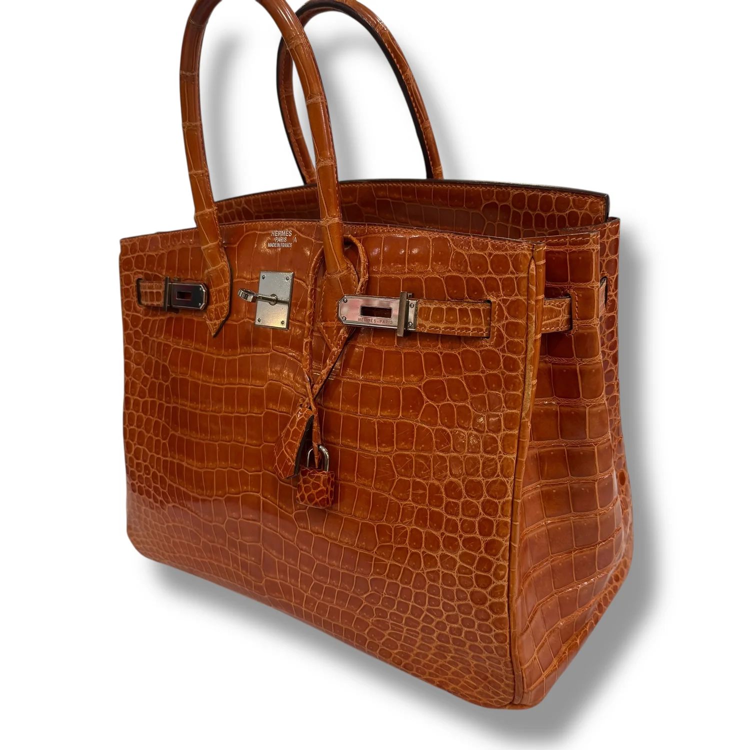Hermès - Sac Birkin 35 Crocodile Porosus PRICE: €36.590,00 Tax included DETAILS • Condition: B - Very good condition • Dimensions: 35 x 25 x 18 cm • Material: Crocodile Porosus • Color: Palladium fittings orange • Sold with: Dustbag ——— Les Folies d’Eugénie 8 Rue Saint-Florentin, 75001 Paris, France Phone: +33 7 85 89 61 65 Email: juliette@lesfoliesdeugenie.fr