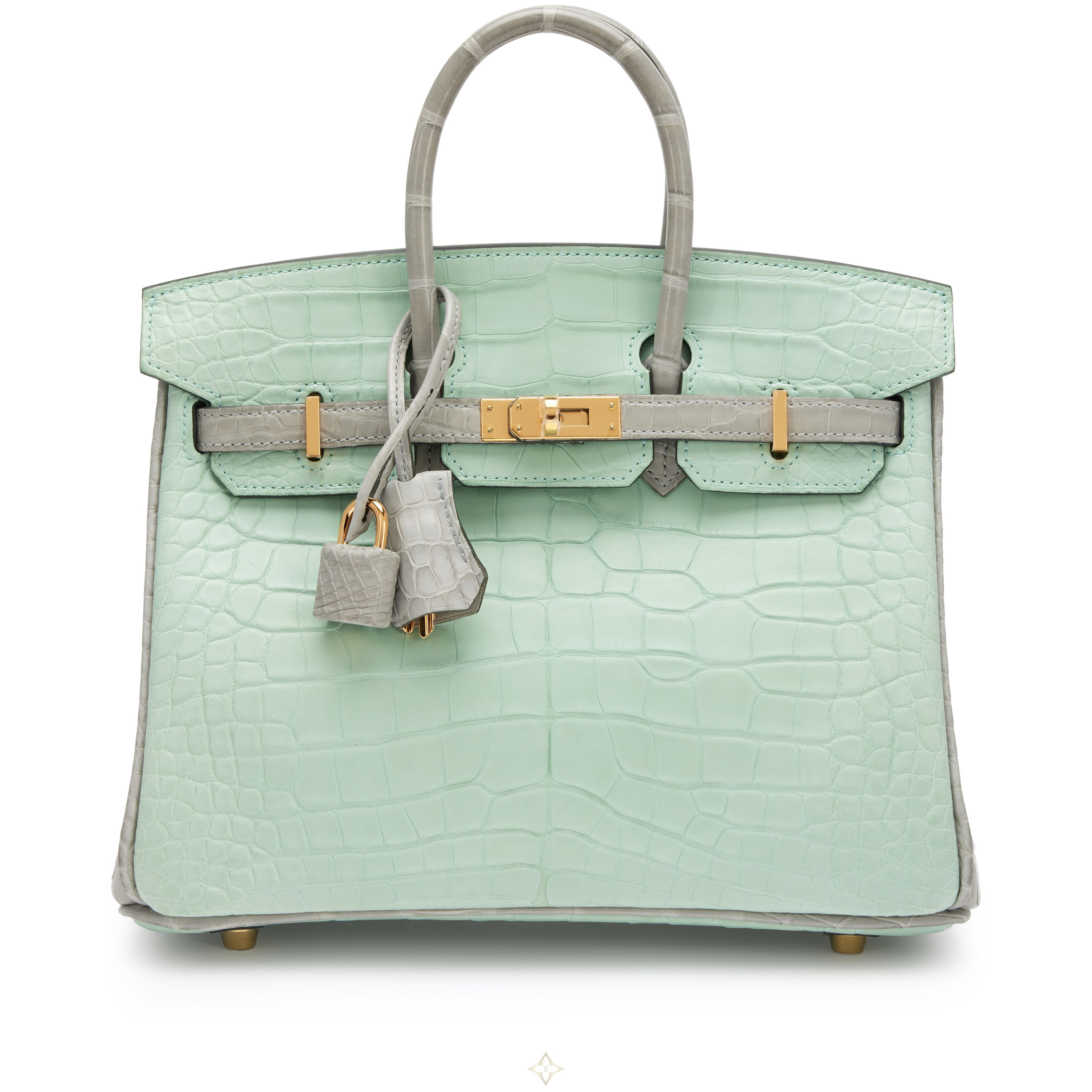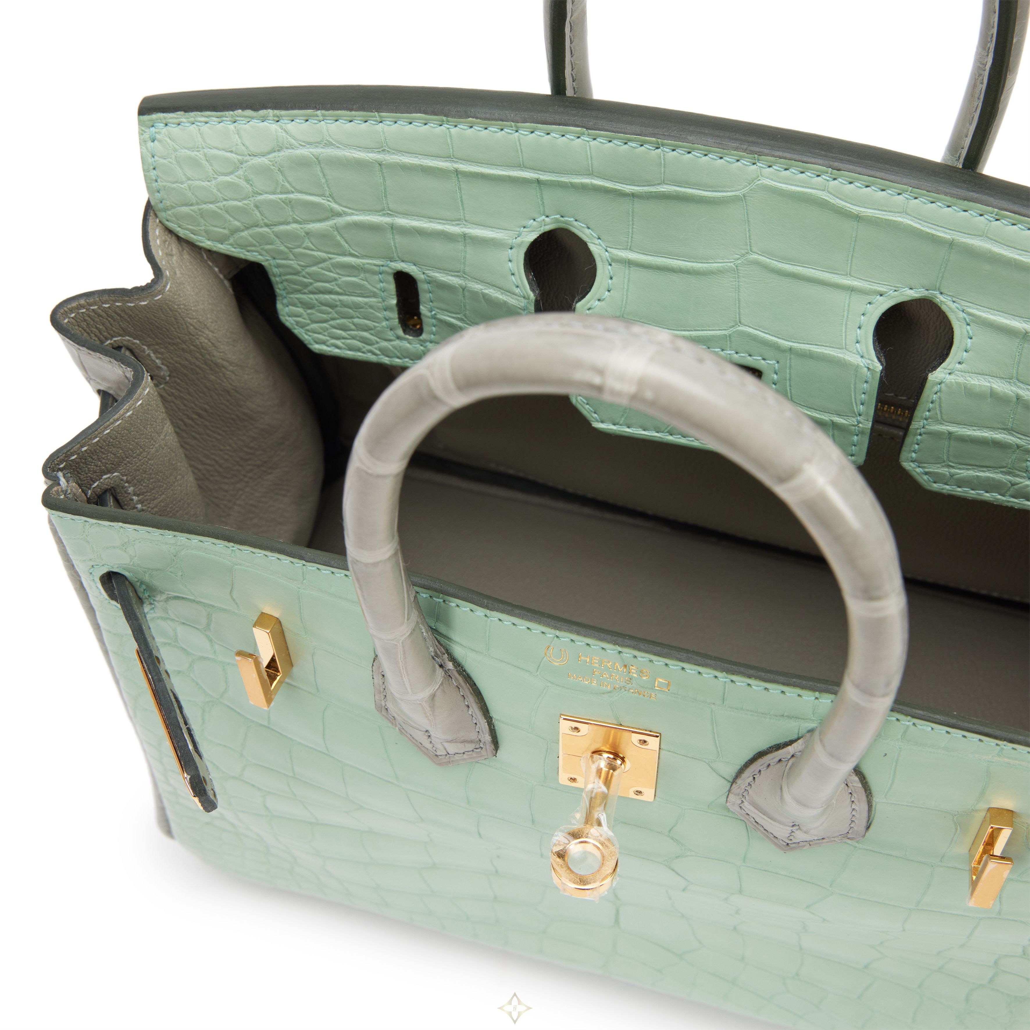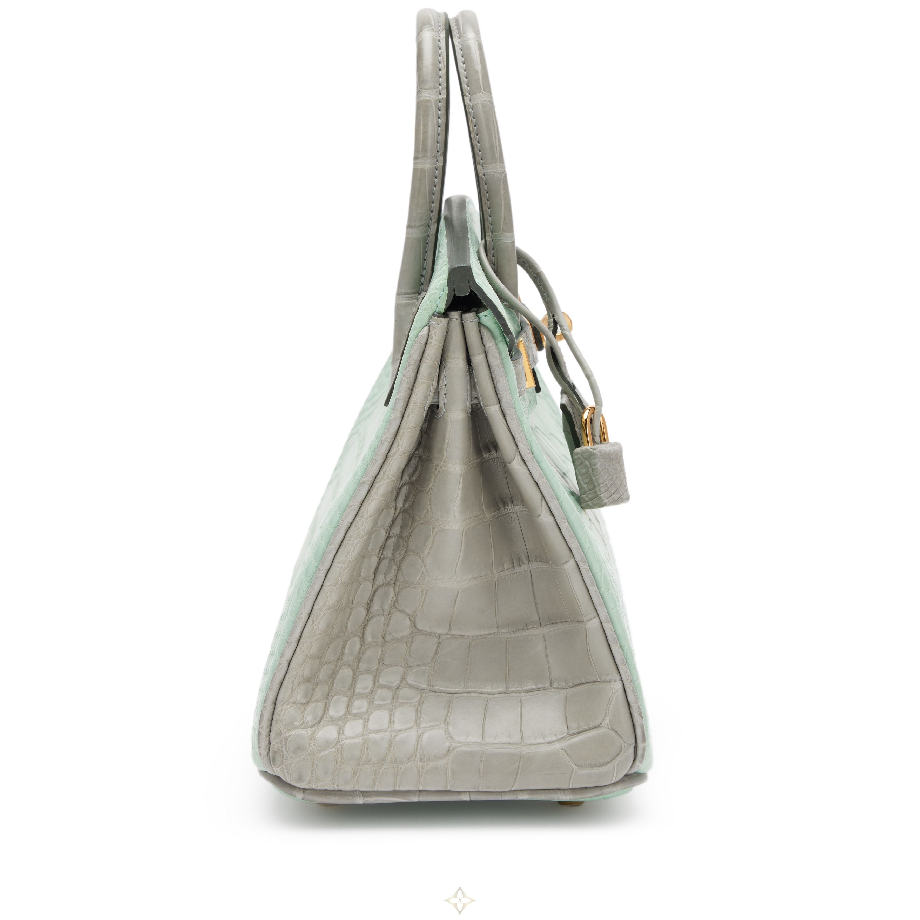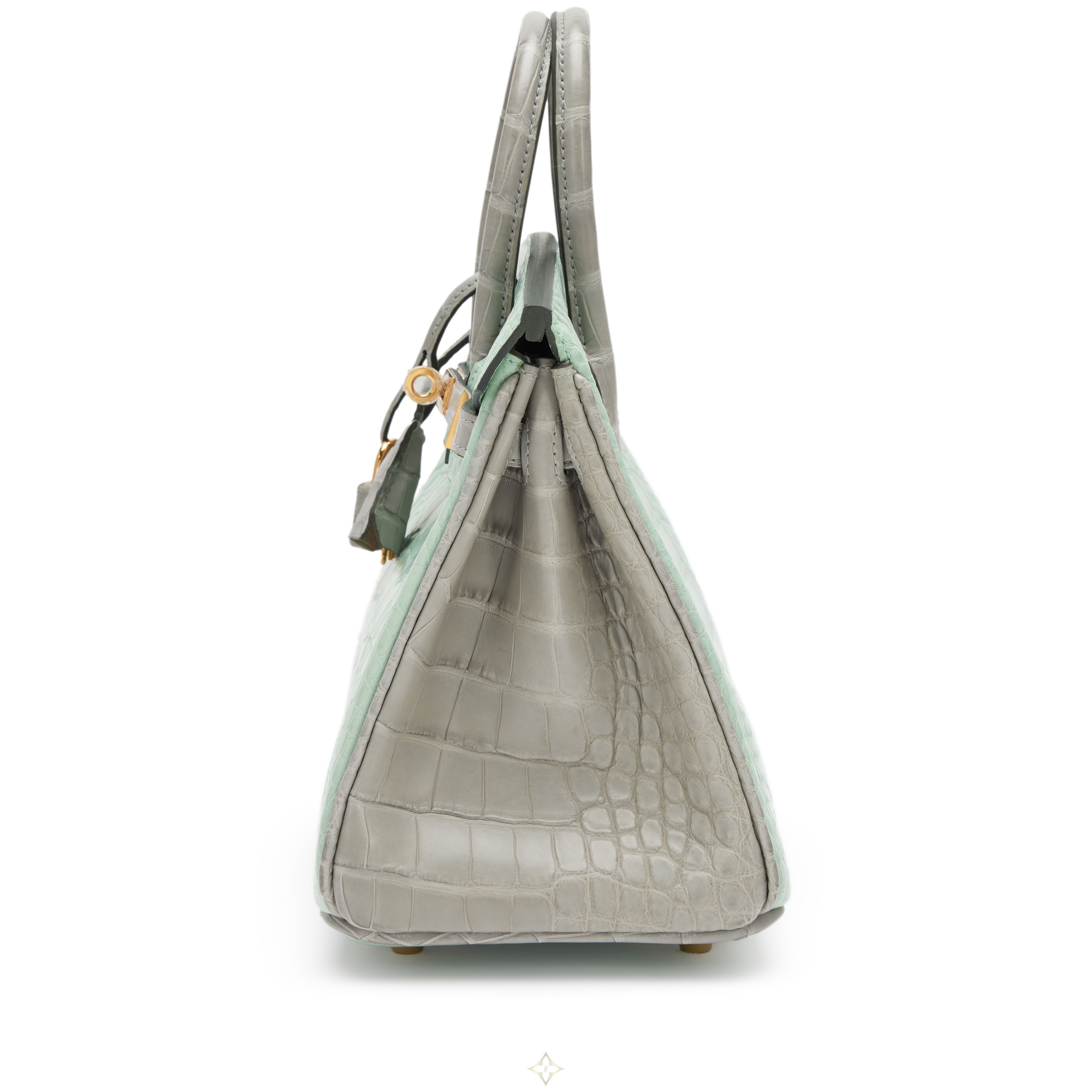 Vert D'Eau and Gris Perle Matte Alligator Birkin 25 Gold Hardware, 2022