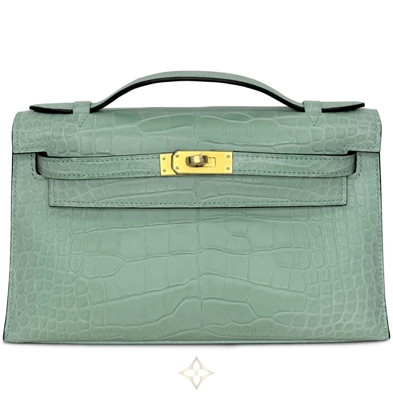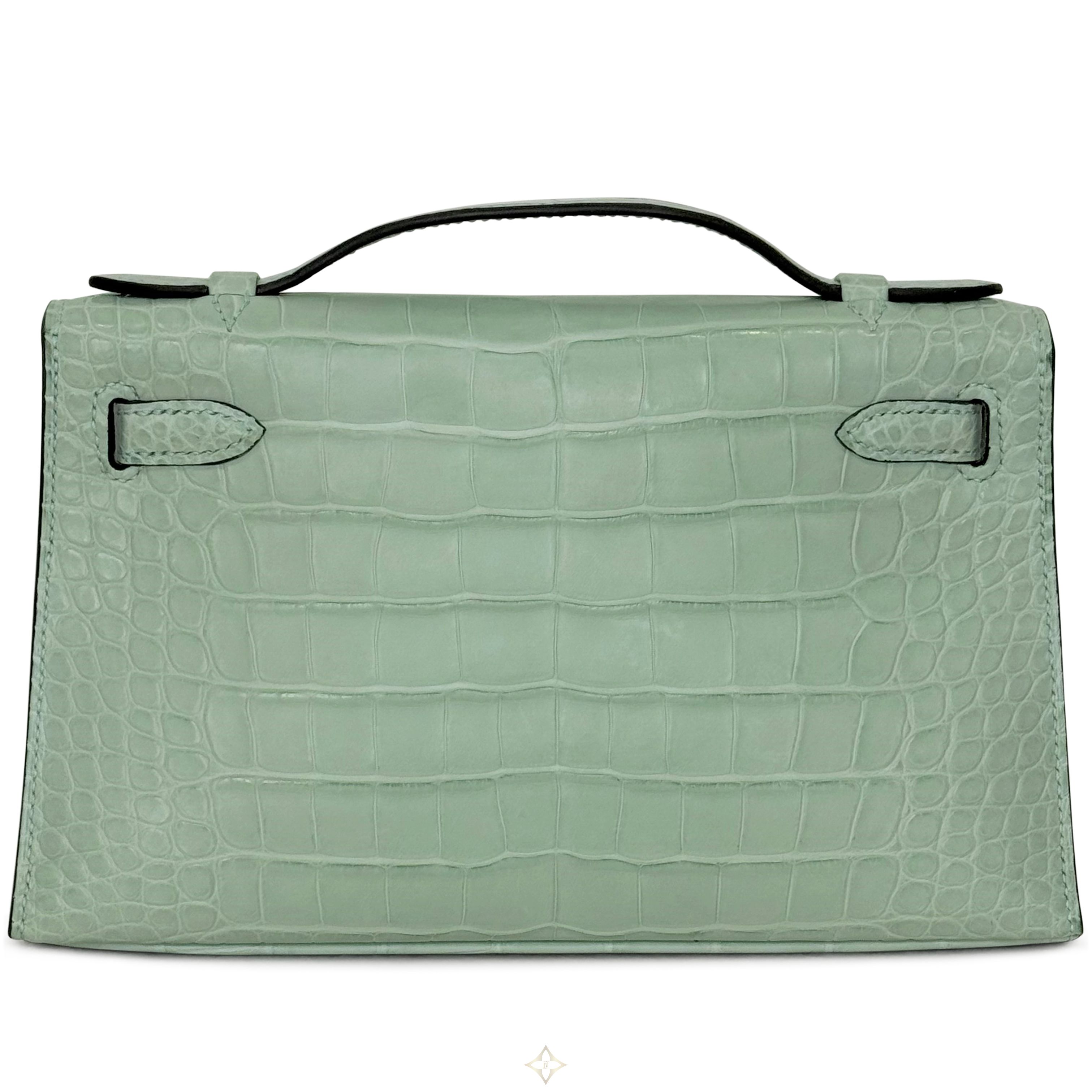 Vert D’Eau Matte Alligator Kelly Pochette Hardware, 2024