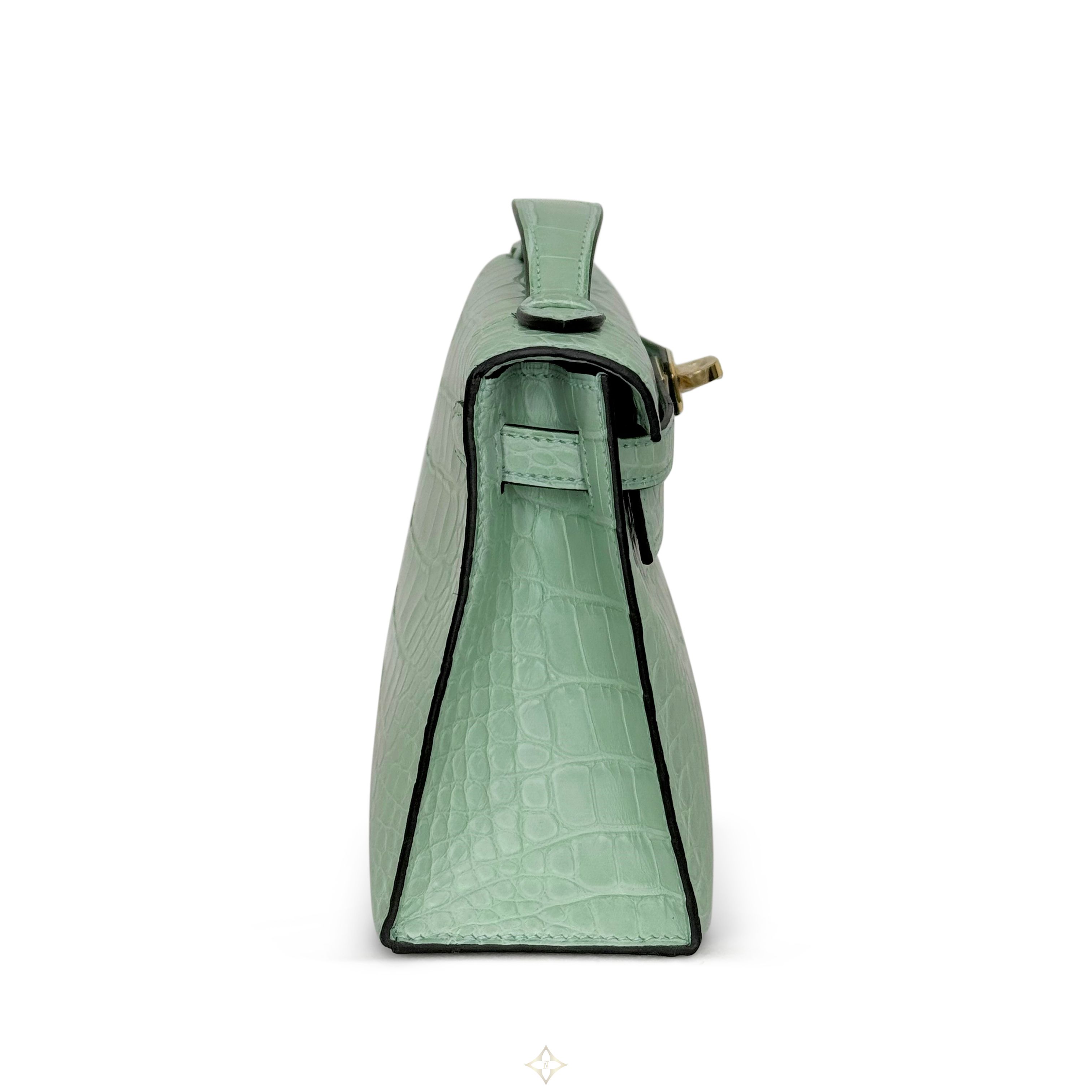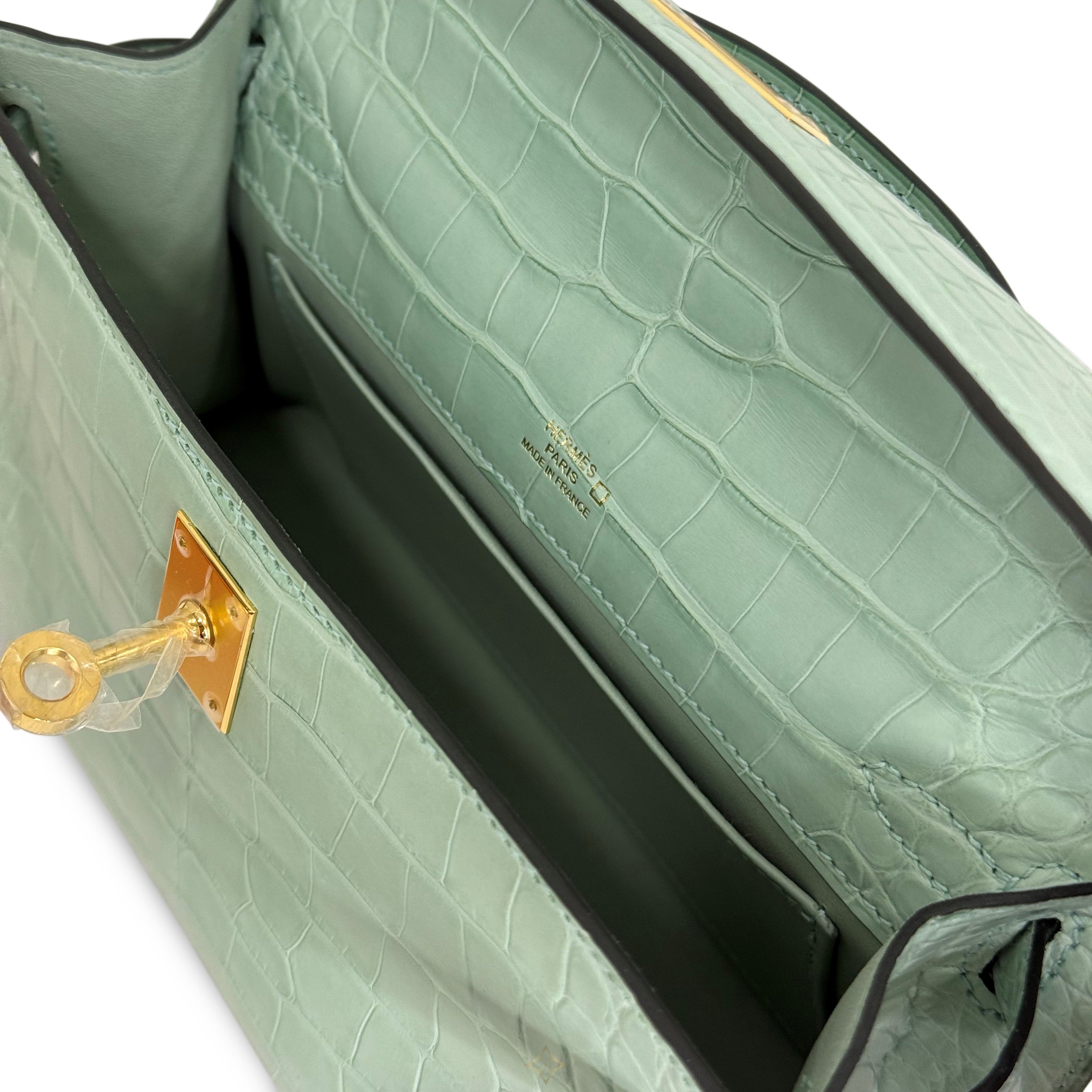Hermès Vert D’Eau Matte Alligator Kelly Pochette Gold Hardware, 2024