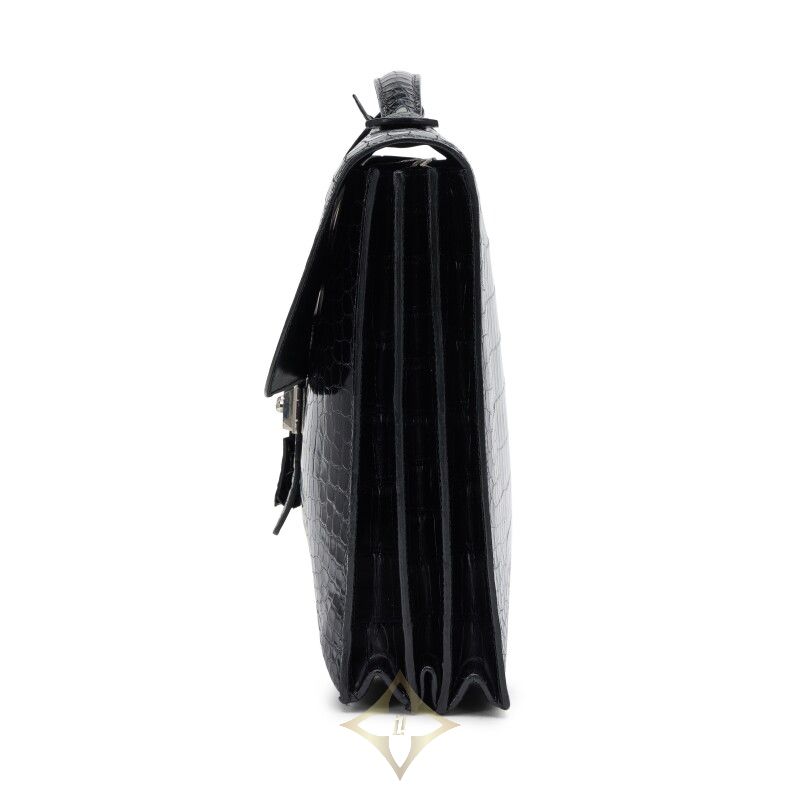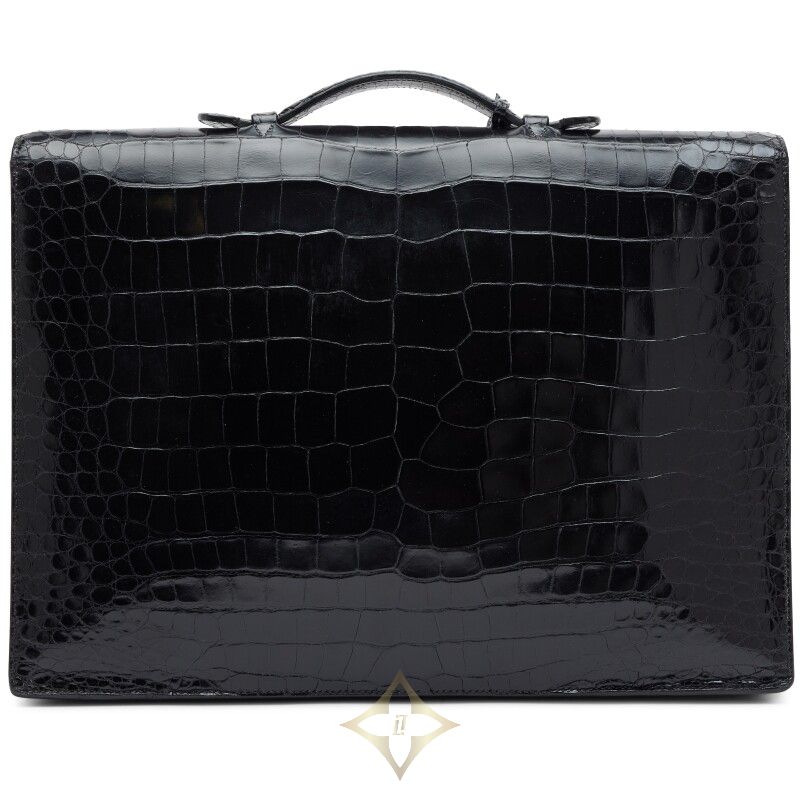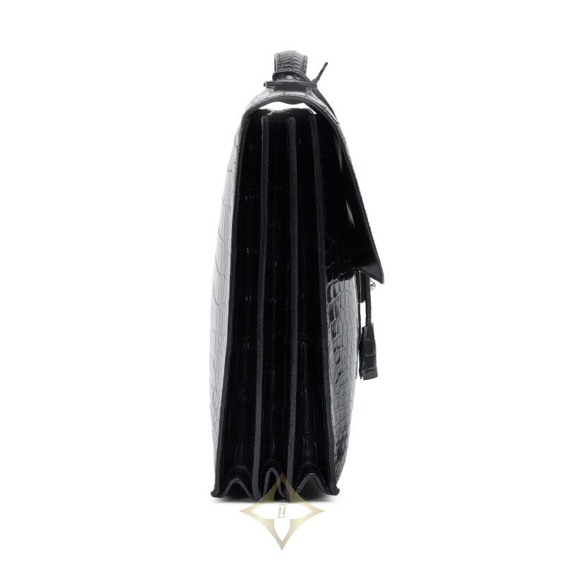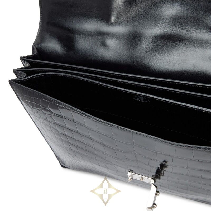 Hermès Vintage Black Shiny Porosus Crocodile Sac A Depeche 41, 2004 | Singapore 🇸🇬