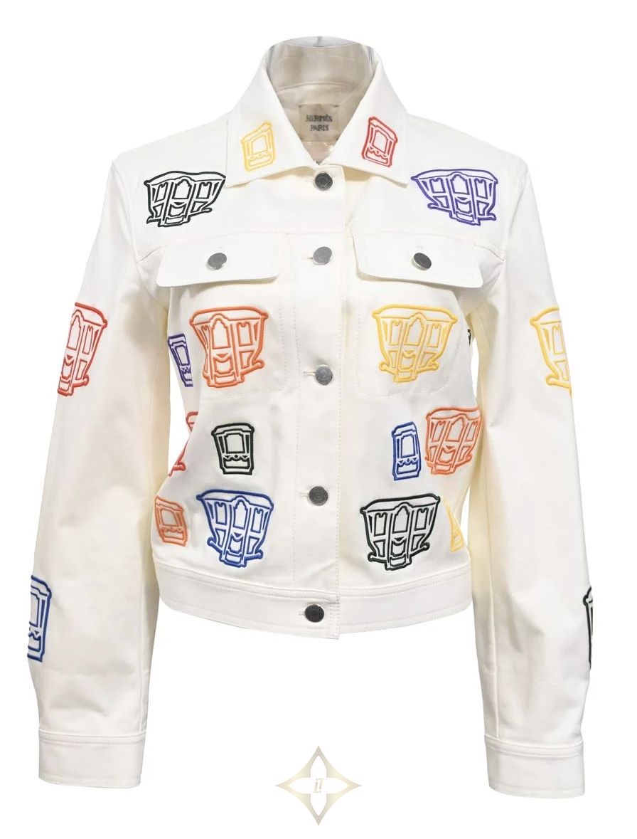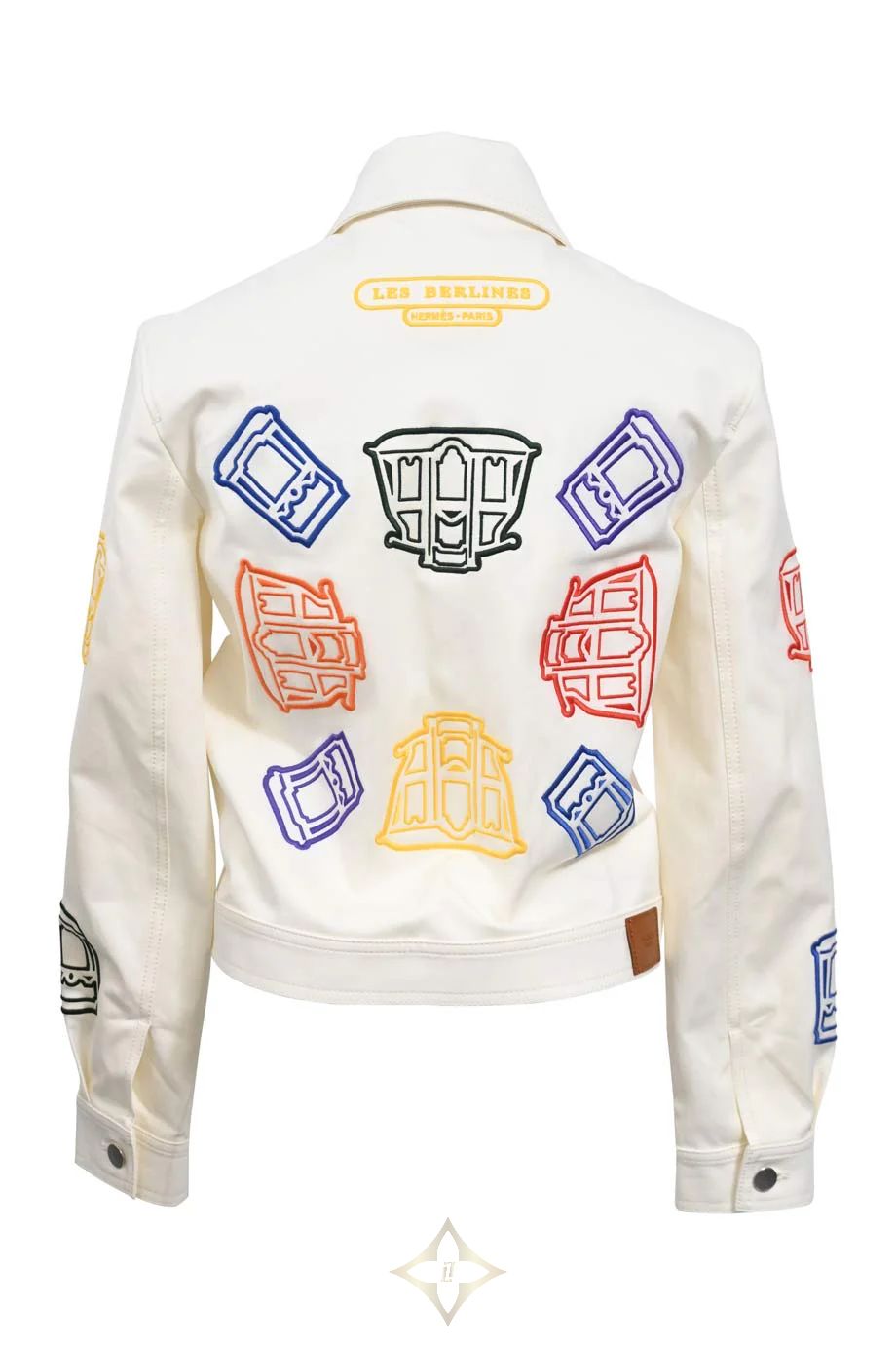 Hermès White stretch-cotton denim spread collar Berlines embroidered jacket | Central 🇭🇰