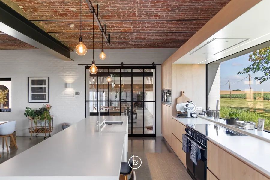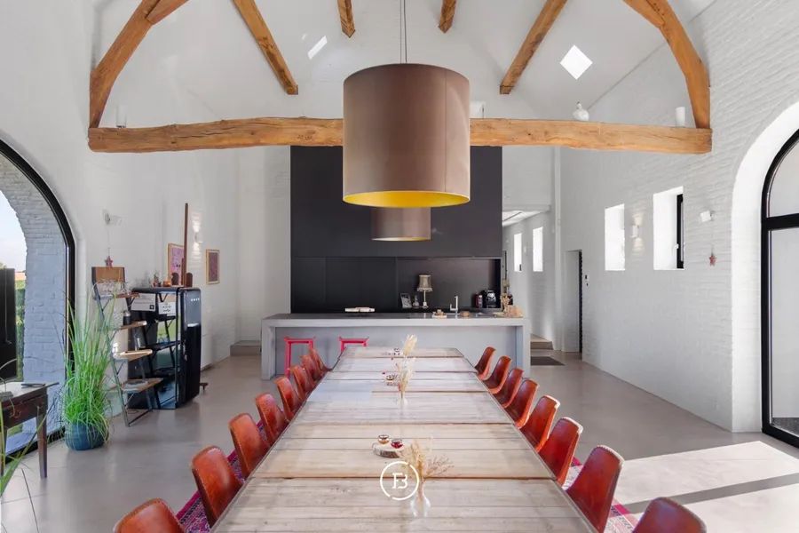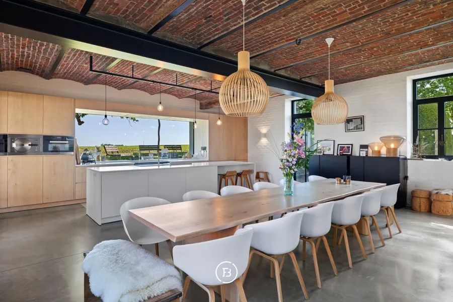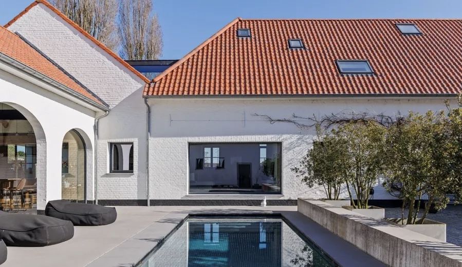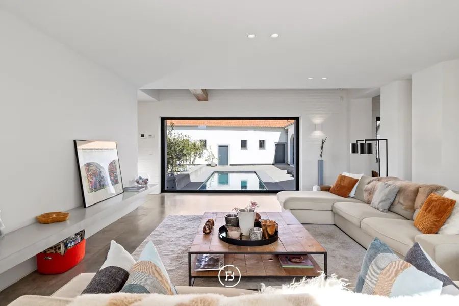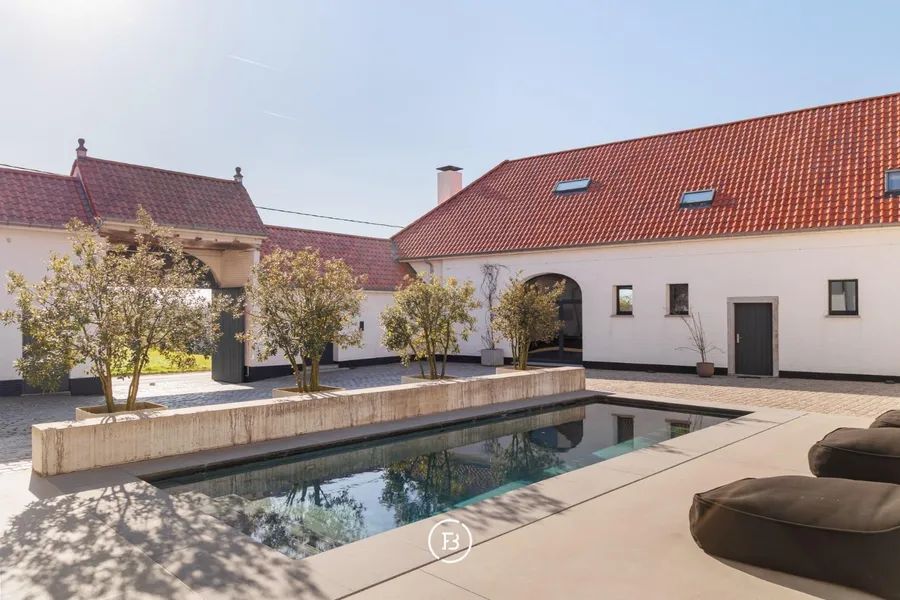 Het Molenhof is a beautifully renovated square farmhouse from the 18th century, located in the heart of the Pajottenland. This unique property combines contemporary luxury with authentic charm and offers a sublime level of finish with sweeping panoramic views. Behind the stately entrance gate lies a charming inner courtyard featuring an elegant swimming pool and a spacious covered terrace, where one can enjoy peace and privacy.