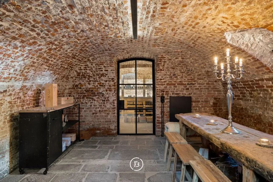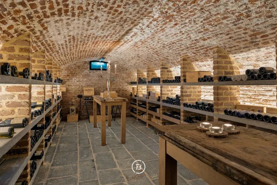 On the first floor, you’ll find an impressive master suite with a walk-in dressing room and en-suite bathroom. On the opposite side are two bedrooms, each with its own mezzanine, sharing a bathroom. There is also an additional bedroom with a separate bathroom. A characterful wine cellar with a stylish tasting room completes this exceptional ensemble.