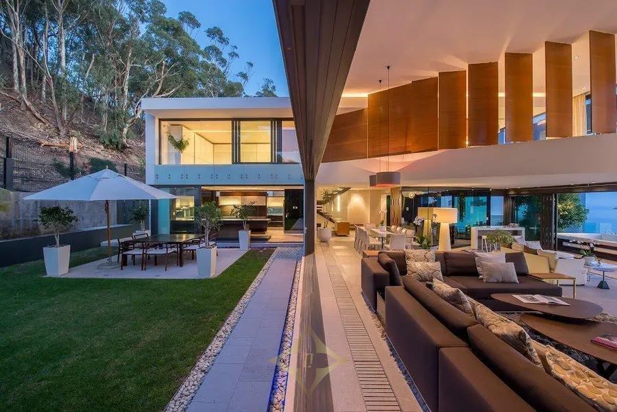 Positioned in prestigious Nettleton Road designed by world renowned architecture firm SAOTA, this luxury home offers spectacular views of Clifton. Generous double volume open-plan entertainment area leading onto terrace and rim-flow pool. Enjoy the tranquility of the courtyard mountain garden. Family room, cinema room and gym. Five spacious bedrooms all en-suite. Two staff accommodations, fully automated curtains and blinds, air-conditioning throughout and four garages. Alarm system and CCTV cameras.