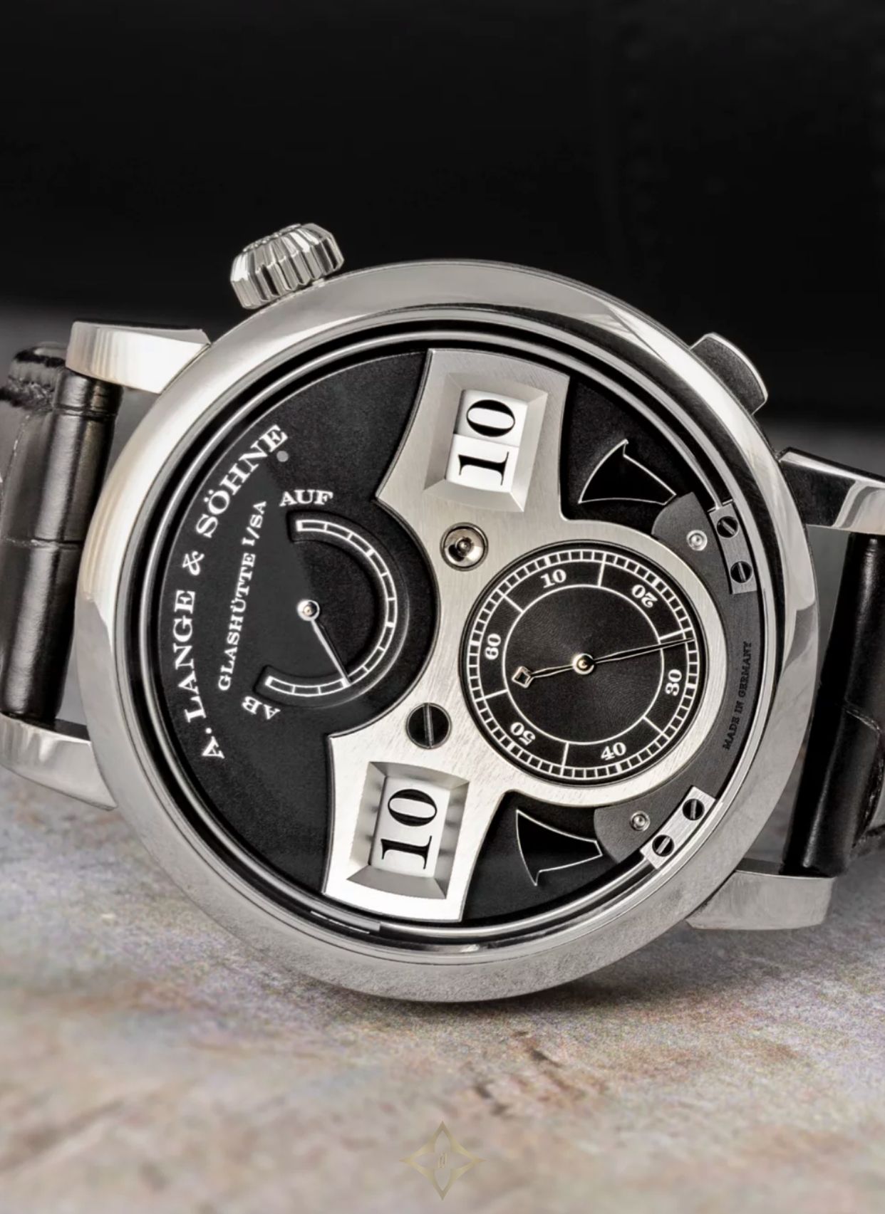 A. Lange & Söhne Zeitwerk Striking Time White Gold Black A. Lange & Söhne Lange & Söhne represents the height of German watchmaking. The brand was founded in 1845 by Ferdinand Adolph Lange in the small Saxon town of Glashütte, and was one of the driving forces behind making the region Germany’s center of watchmaking. From the start, the goal was clear – to achieve the same level of precision and craftsmanship as the Swiss masters – and dare we say it, they did just that. The brand flourished until the mid-20th century, when it was nationalized under Soviet rule after World War II.