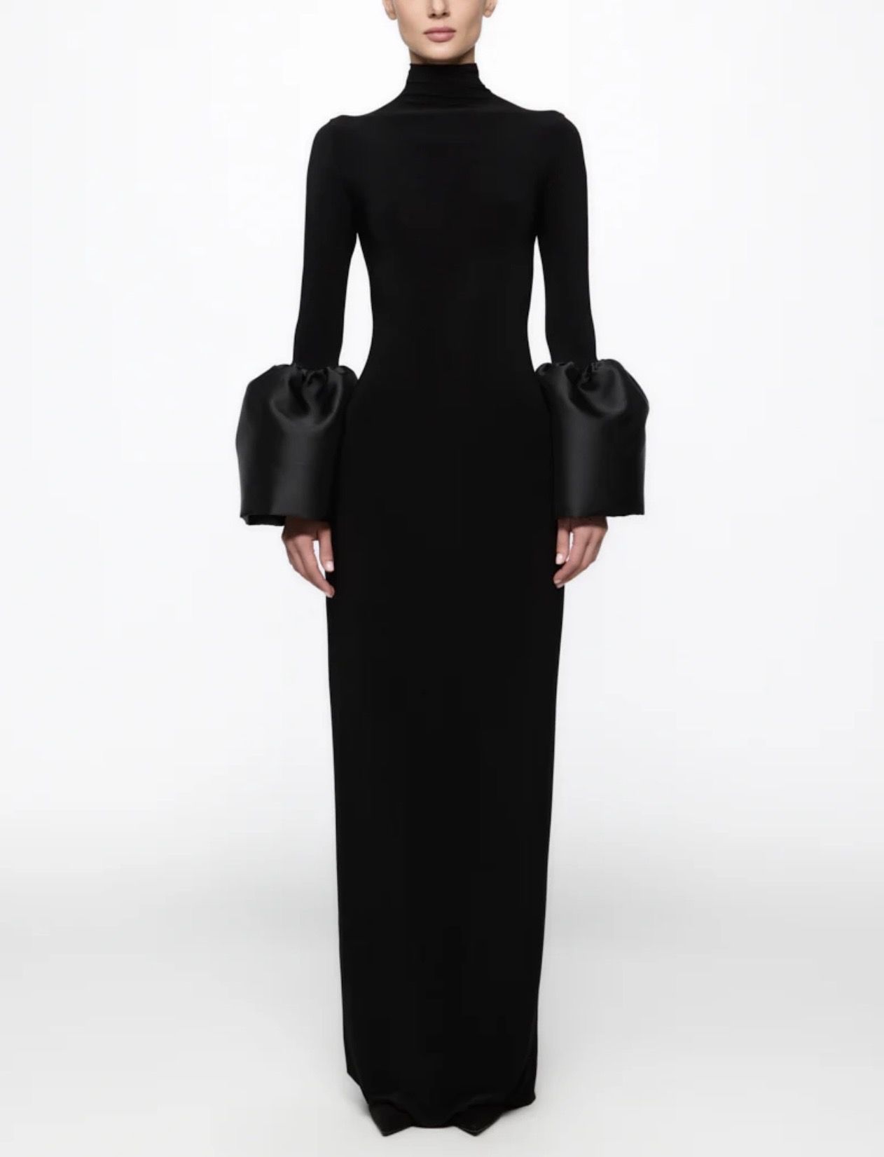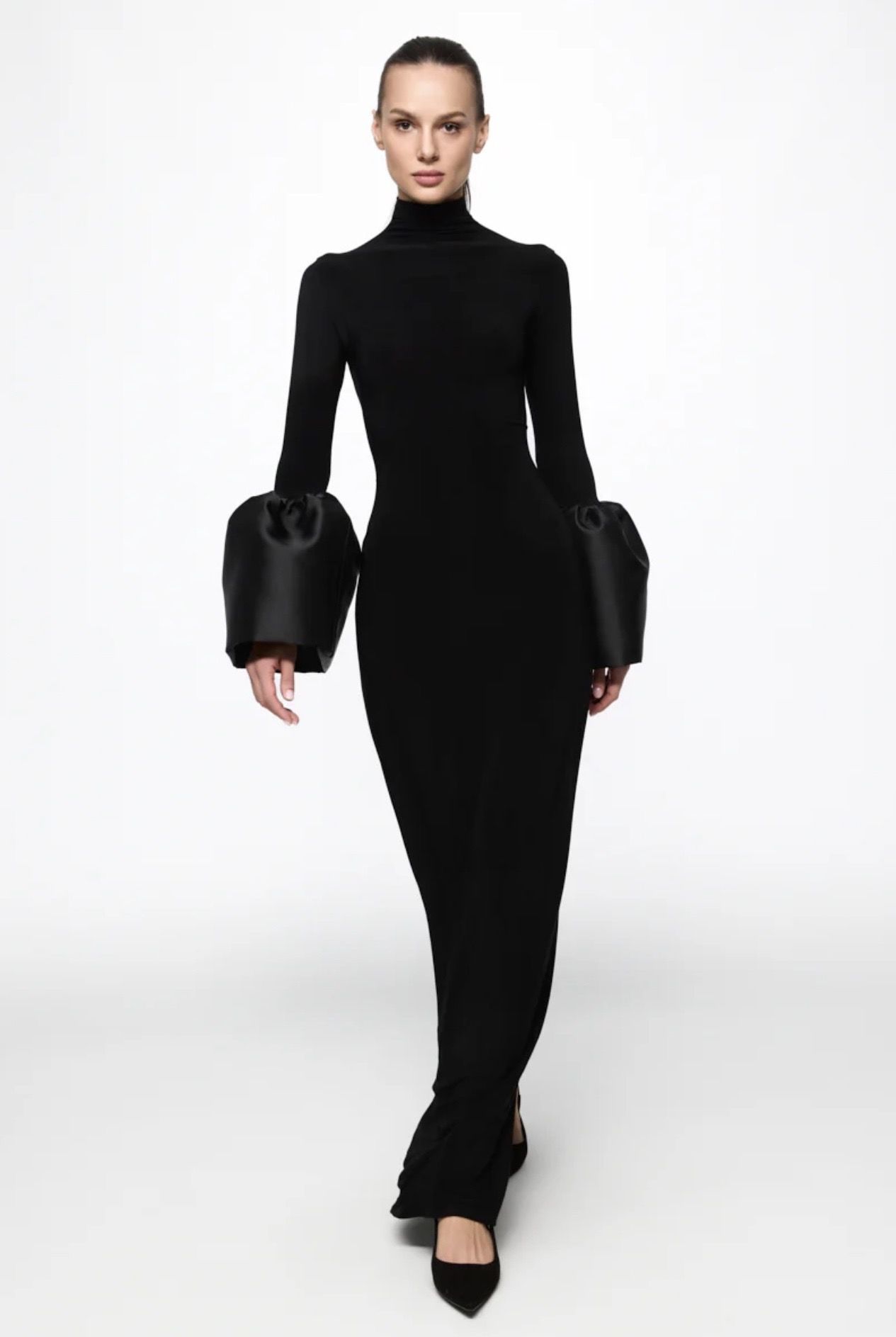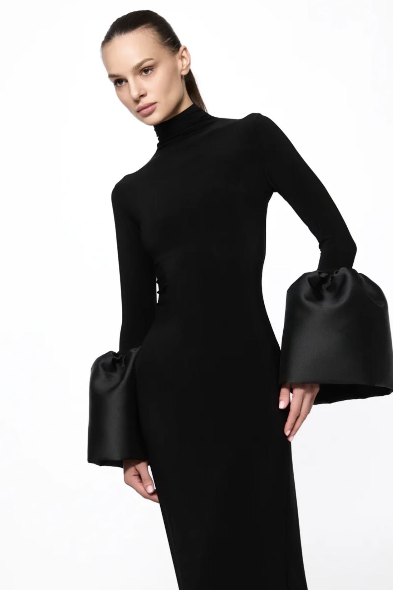 High neck midi dress with bell-sleeve PRICE: €590,00 (incl. VAT, excluding shipping costs and taxes) Size: L | M | S | XS | XXS Details High neck midi dress with bell-sleeve made of taffeta. long sleeves with taffeta details high neck back slits Fabric: 100% recycled polyester Made in Romania. DRY CLEAN. Our model is 184 cm H and wears size S. SKU: AT25107 ——— ATU Body Couture Bucharest Showroom Bulevardul Aviatorilor 39, Sector 1, 011861 Bucharest, Romania Phone: +40 723 520 260 Email: contact@atubodycouture.ro