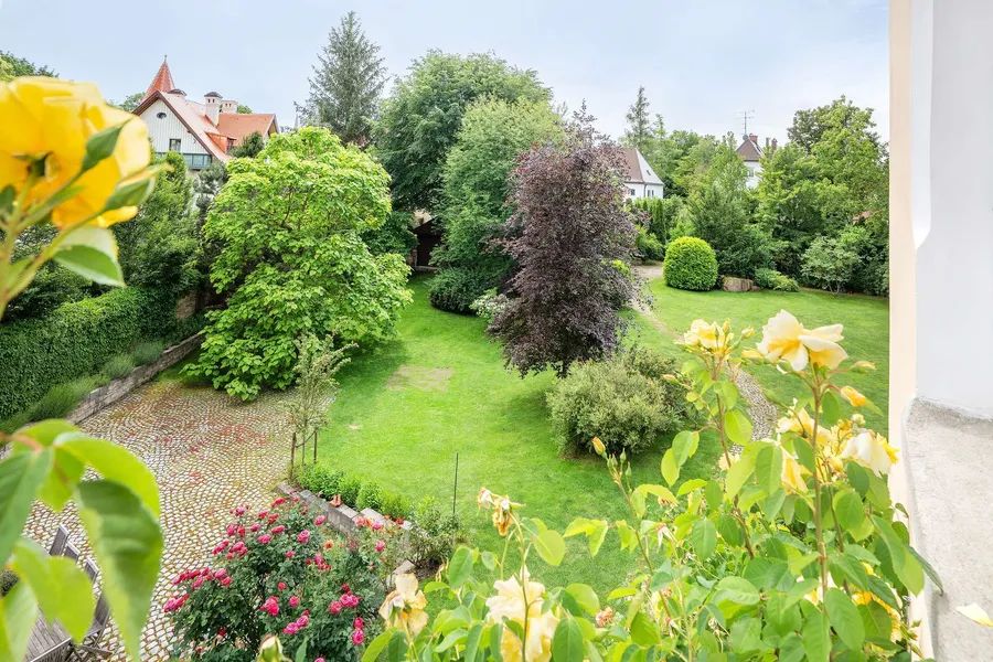 The park was laid out in the English style and forms a unique ensemble with its impressive size of almost 4,000 m². Old trees, well-tended hedges here, an almost intimate inner courtyard there. A parking lot for up to five vehicles.