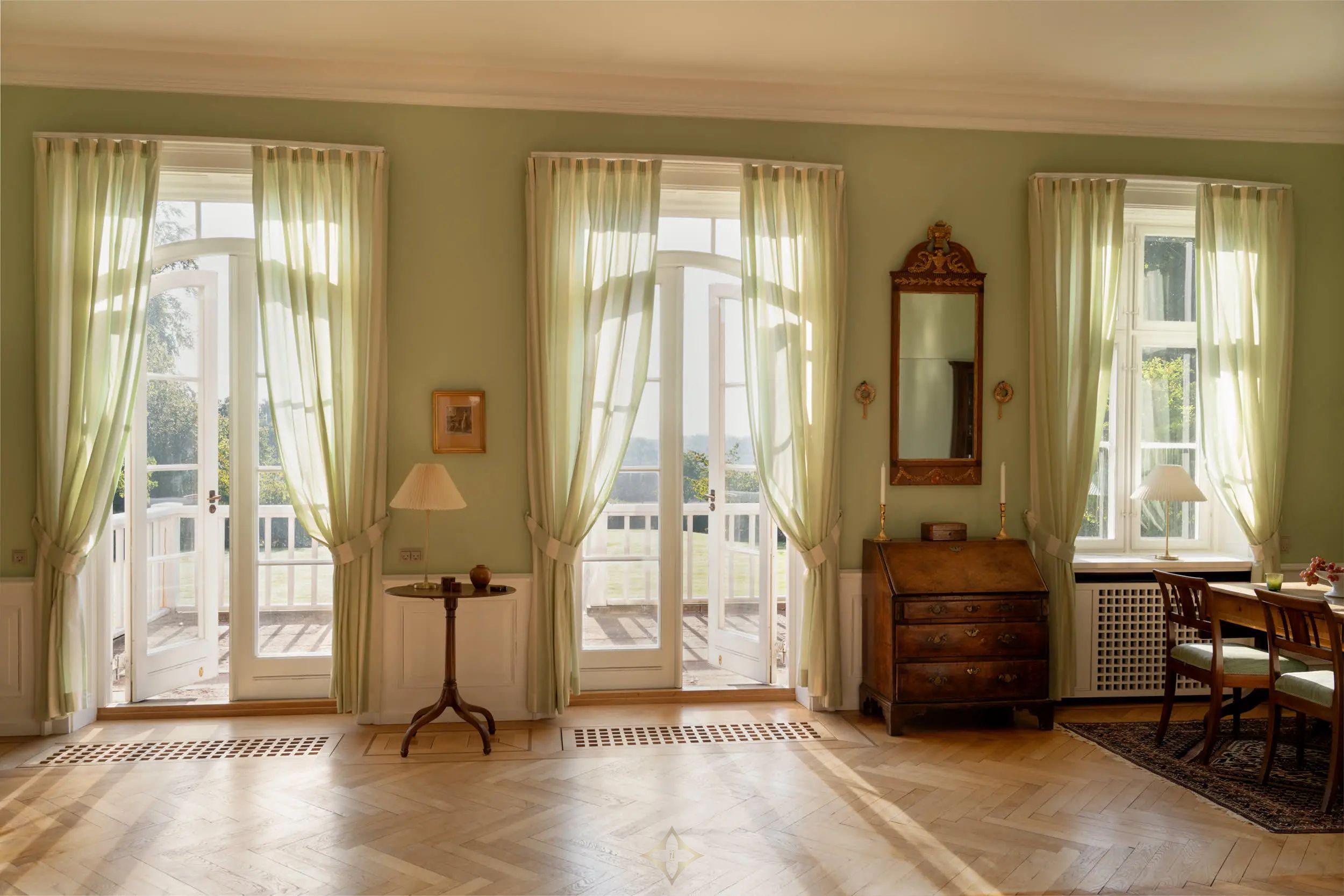 Built in 1892 and carefully restored since 1997 by the current owner, with great respect for the original architecture, the heart of the estate, the main house, exudes aristocratic elegance across its 912 m². The high-ceilinged rooms, elegant parquet floors, and classic fireplaces reflect the property’s history, while the 15 rooms, many beautifully inspired by various nationalities, add a unique character. The large windows capture the landscape beautifully, allowing daylight to stream in, where the changing seasons play in harmony with the timeless beauty of the home. The house also features a humidity- and temperature-controlled wine cellar with space for 3,000 bottles.