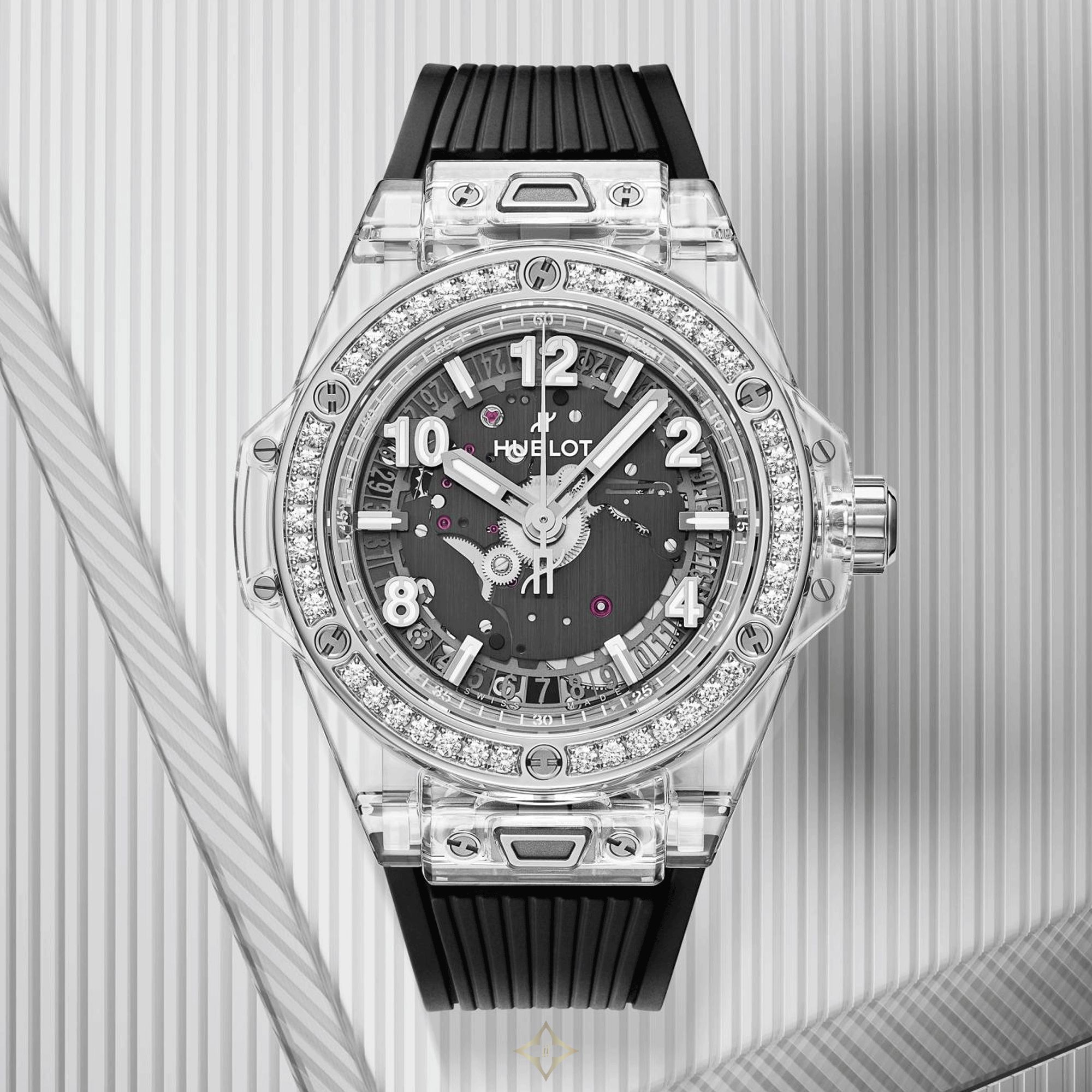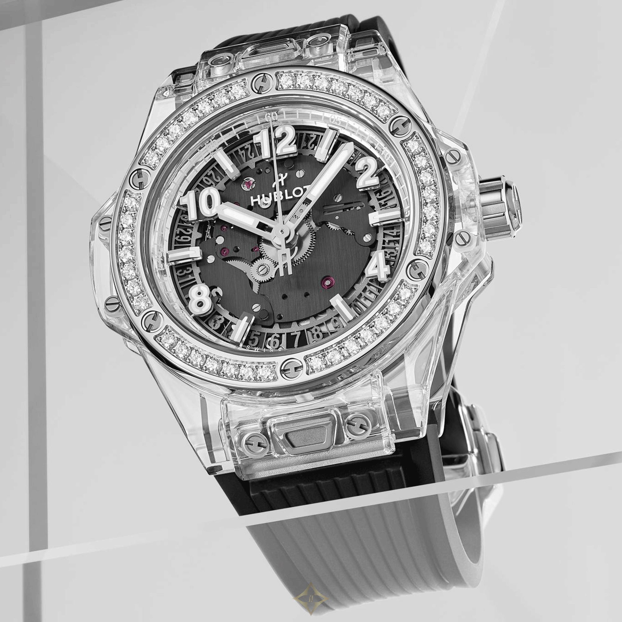 Transparency, brilliance and robustness perfectly define this new Hublot Big Bang One Click Sapphire Diamonds watch!
