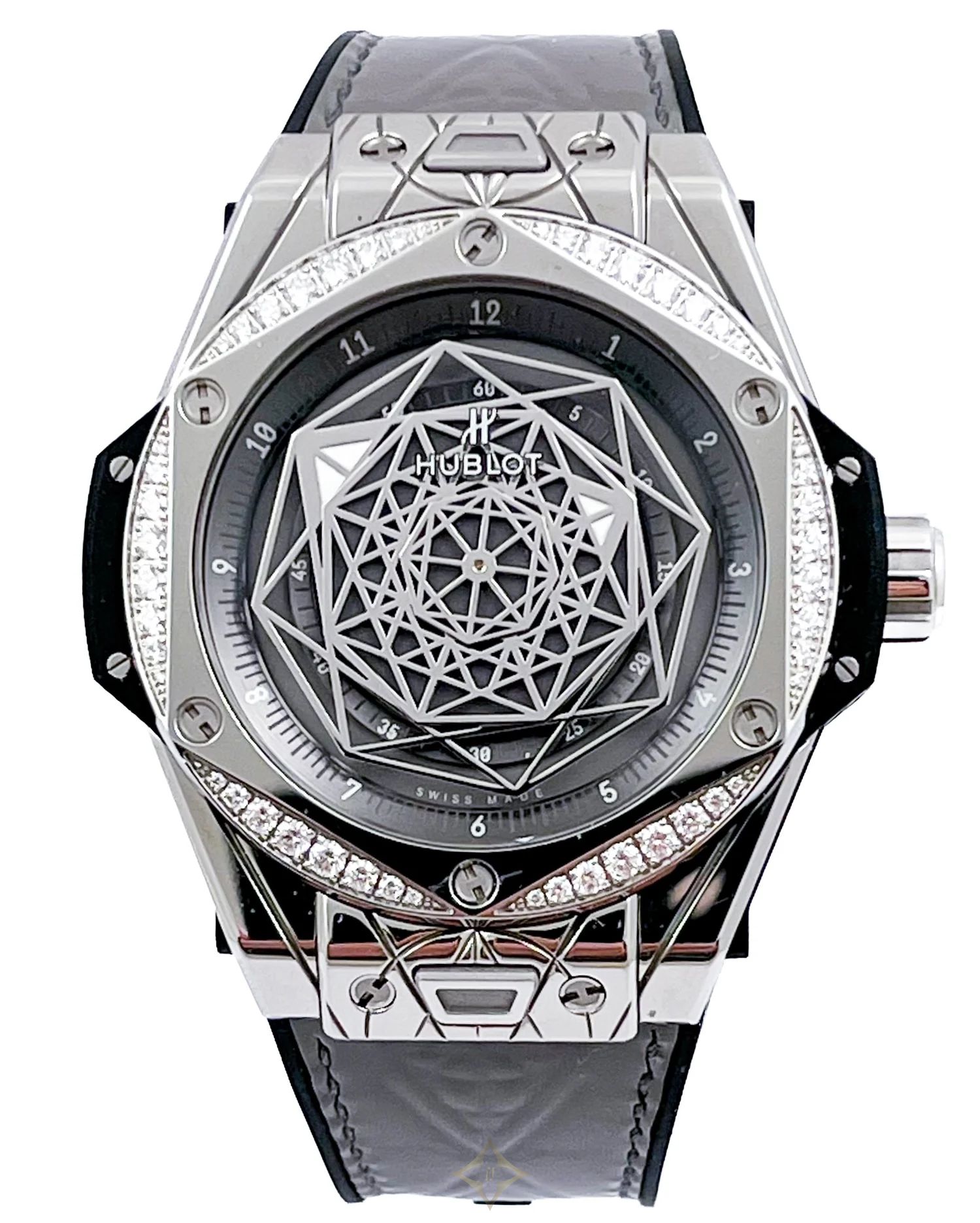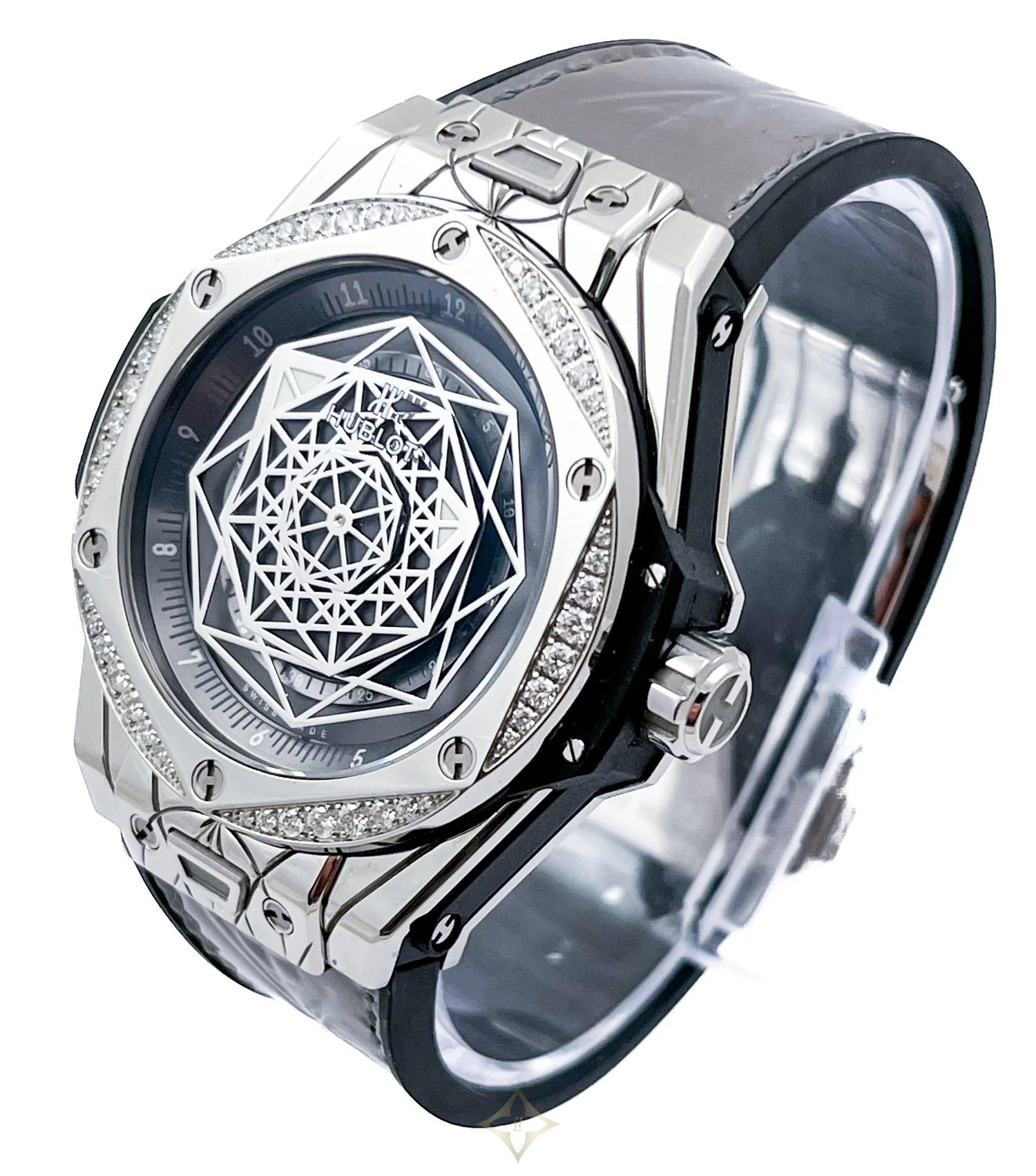 Bezel: Stainless Steel with Hexagonal Design by Maxime Buchi Set with 48 Diamonds with a total weight of 0.70ct