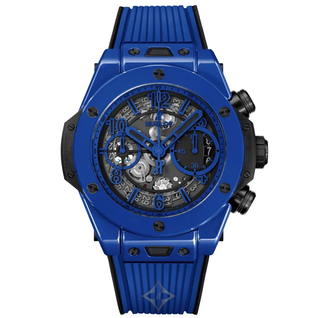 Hublot Big Bang, Unico Blue Magic, 42mm, Blue Ceramic, Ref# 441.ES.5119.RX, Unworn 2025 Regular price: $20,450.00 USD DESCRIPTIONS Hublot Big Bang Unico Blue Magic, 42mm watch, blue ceramic case, satin/brushed finished with fine polished corners, Reference 441.ES.5119.RX. This model has Blue and Matte Black Skeleton dial with applied applique style Arabic numerals and index hour markers with luminous fill. Blue dial flange with a minute/seconds track. Bold blue brushed finished hands with luminous fill (minutes and hours hands semi-skeleton). Small running seconds sub-dial hand located at the 9 o'clock position. Date window located between the 3 o'clock positions. Screw-down crown. The dial closed by a Scratch-resistant Sapphire Crystal with Anti-reflective Treatment. Of Sapphire Crystal made transparent case back. Chronograph stopwatch functions: column wheel chronograph mechanism; features a Flyback function, which allows instant restarting of the chronograph with a single push of the button; large central seconds counter with the "H" logo as a counter-weight; 60-minute counter sub-dial at 3 o'clock. The watch is equipped fixed blue ceramic bezel, secured 6 immediately recognizable Hublots signature "H" screws style of Titanium. The watch is Hublot Caliber HUB 1280 UNICO Manufacture Self-winding Chronograph Flyback Movement with Column Wheel automatic movement, contains 43 Jewels and has an approximate power reserve of 72 hours. This model presented on a Black and Blue Structured Lined Rubber Strap with Black Ceramic and Black-plated Titanium Deployant Buckle Clasp. The water resistance is up to 100m/330ft (10 ATM). SPECIFICATIONS Make: Hublot Model: Big Bang Unico Blue Magic Reference: 441.ES.5119.RX Diameter: 42mm Case material: Blue ceramic Dial color: Blue and Matte Black Skeleton Bezel Type: Fixed Bezel Color: Blue Bezel Material: Ceramic Crystal: Sapphire Movement: Automatic movement Bracelet Type: Strap Bracelet Material: Black and Blue Structured Lined Rubber Clasp: Black Ceramic and Black-plated Titanium Deployant Buckle Functions: Date, Chronograph, Hour, Minutes, Seconds Water resistance: Up to a 100m/330ft (10 ATM) Warranty: Balance of Hublot International Warranty All new Hublot watches come with the latest iteration of the Hublot e-Warranty, which doesn’t include any paper/plastic warranty cards/books/booklets etc. The authenticity of Hublot watches is guaranteed by visual recognition of the micro-structure of their materials. With the HUBLOT e-warranty, Hublot is launching a digital warranty stored in the AURA blockchain. A specific e-warranty application also exists for customers. The unitary recognition of the piece by the Hublot e-warranty application, is available on the Google Play Store and Apple App. ———