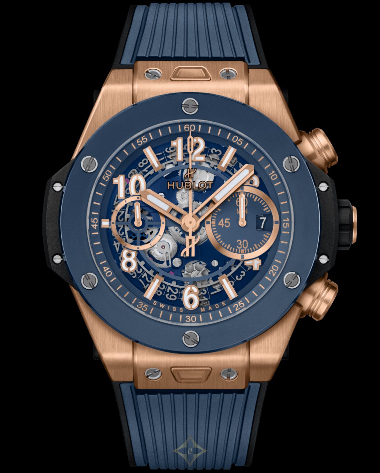 Hublot Big Bang Unico King Gold Blue 44 mm watch H421.OL.5180.RX PRICE: 43.300 € DESCRIPTION Hublot Big Bang Unico King Gold Blue watch with case, automatic movement and matte blue skeleton dial. Blue sandblasted polished ceramic bezel and blue structured rubber strap with stripes. Hours, minutes, seconds, date and chronograph functions. CHARACTERISTICS Material Rose Gold Dial Blue, Special Bracelet Rubber Size 44mm Movement Automatic Waterproofness 10 bar This piece is insured against theft or physical damage. Without additional cost and only available for Spain resident customers. ——— Relojeria Alemana Carrer de Colom, 14, Centre, 07001 Palma, Illes Balears, Spain Phone: +34 971 712 917 WhatsApp: +34 616 65 83 75 Email: info@relojeriaalemana.com