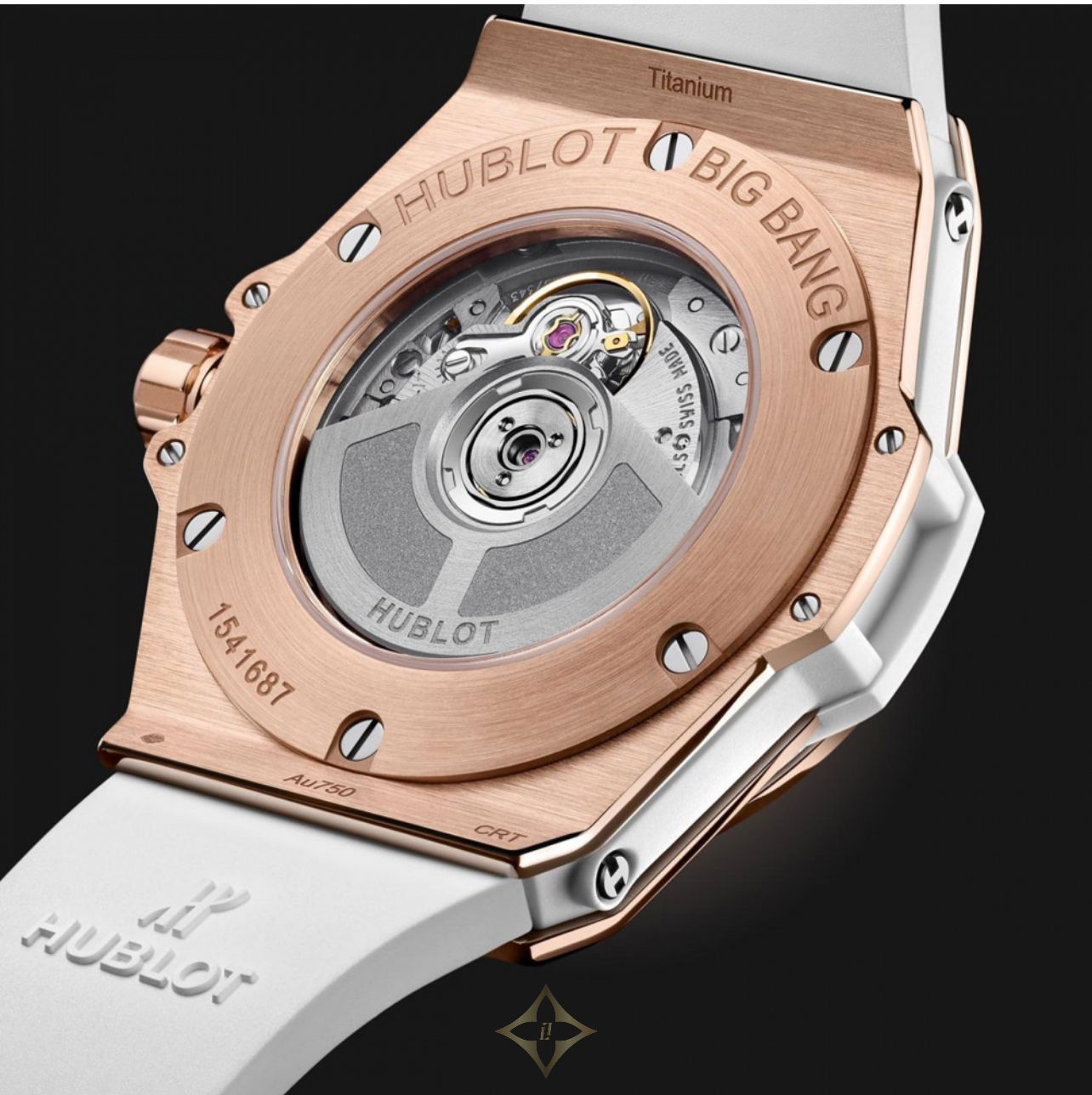 HUBLOT ONE CLICK KING GOLD WHITE DIAMONDS 33MM WATCH 485.OE.2210.RW.1204 SKU 78870 PRICE: £23,500 Hublot One Click King Gold White Diamonds 33mm 485.OE.2210.RW.1204. New to the ladies One Click collection this watch features a polished and satin-finished 18K King Gold 33mm case. Polished white dial set with 11 diamonds and Polished 18K King Gold Set bezel with 36 Diamonds for 0.76cts. Featuring Sapphire crystal with Anti-reflective treatment. HUB1120 Self-winding movement and power reserve of 40 hours. Watch comes on a white structured lined rubber strap with 18K King Gold and Black-plated Titanium Deployant Buckle Clasp. Water resistance to 10 ATM. Complete with 2 year manufacturers warranty and official Hublot packaging. WATCH BRAND: HUBLOT RANGE: BIG BANG ONE-CLICK WATCH REFERENCE: 485.OE.2210.RW.1204 CASE SIZE: 33MM CASE MATERIAL: 18K KING GOLD MOVEMENT: SELF WINDING CHRONOGRAPH: NO DATE FUNCTION: NO DIAL COLOUR; WHITE STRAP MATERIAL: RUBBER ROX - Diamonds & Thrills ROX (U.K.) LIMITED