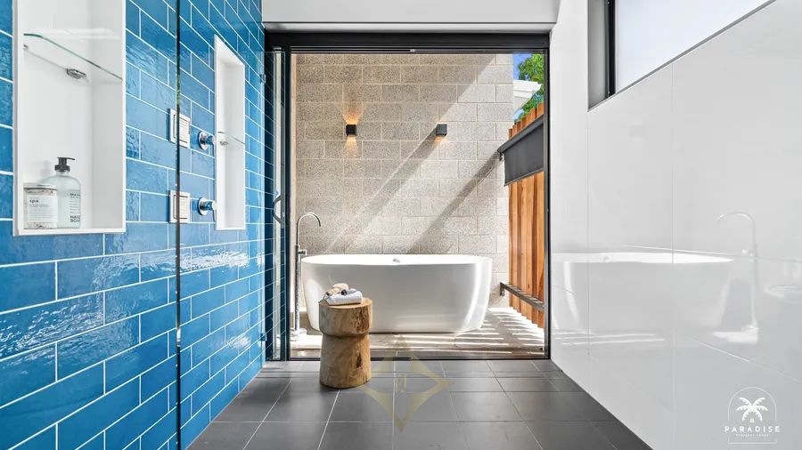 - Oversized Balcony and Entertainment Alfresco that extends full width of property allowing for seamless outdoor dining and lounging with cyclone rated tinted sliding glass doors, polished concreate floors and electric remote-controlled cafe blinds. Designed to provide complete privacy whilst always open to the beach front capturing the amazing views and cooling sea breezes.