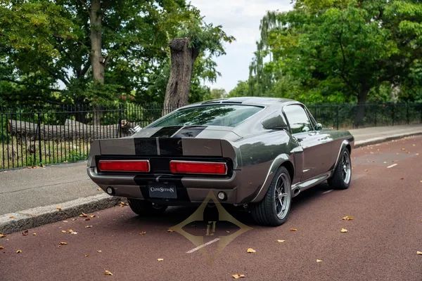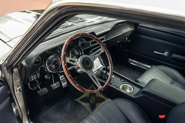 The 1967 Ford Mustang GT500CS Fastback is a true masterpiece of restoration and performance engineering, a car reborn from the ground up with an obsessive level of detail and craftsmanship. Fully stripped to bare metal and finished in Pepper Grey metallic with black flush-painted racing stripes, this Fastback carries an unmistakable Shelby-inspired presence. Its body has been enhanced with the MTF full body kit, steel bonnet, and black chrome accents, giving it an aggressive yet refined stance that pays tribute to the GT500 legacy.